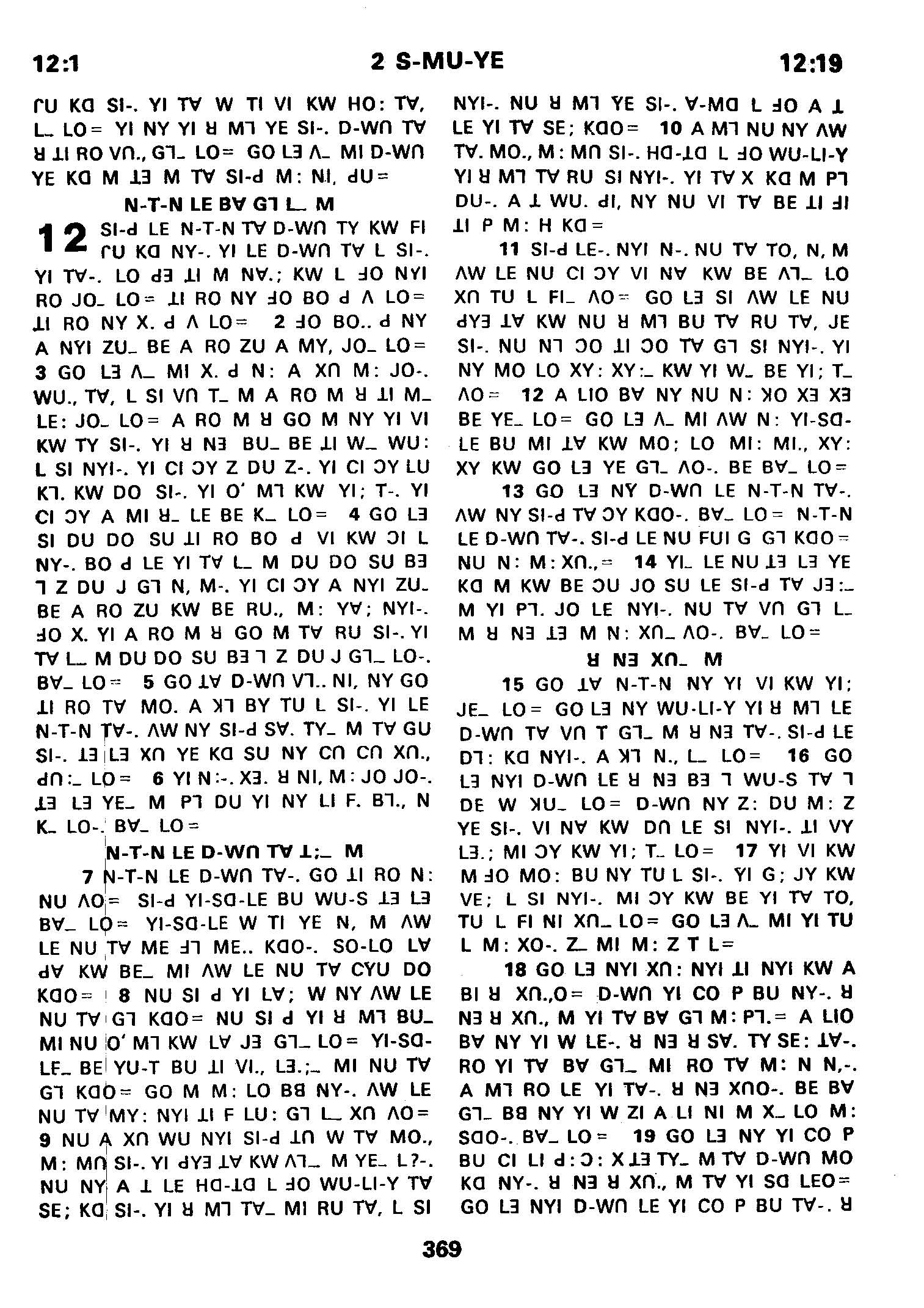 1980年傈僳語聖經全書 撒母耳記下 12 章 1 節到 12 章 19 節