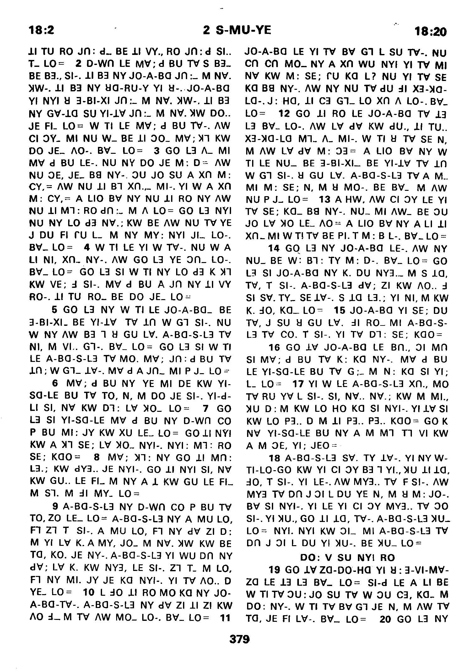 1980年傈僳語聖經全書 撒母耳記下 18 章 2 節到 18 章 20 節