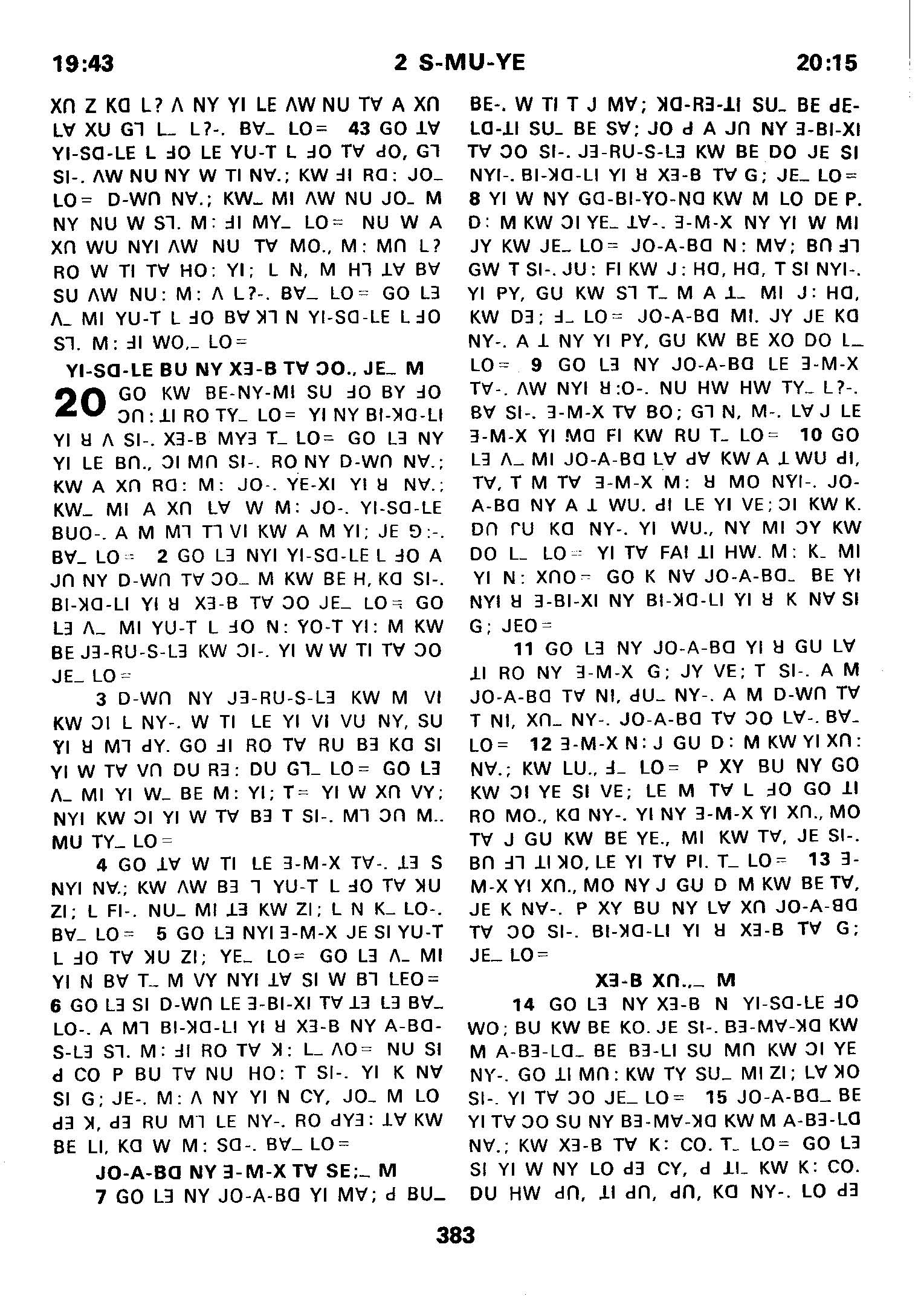 1980年傈僳語聖經全書 撒母耳記下 19 章 43 節到 20 章 15 節
