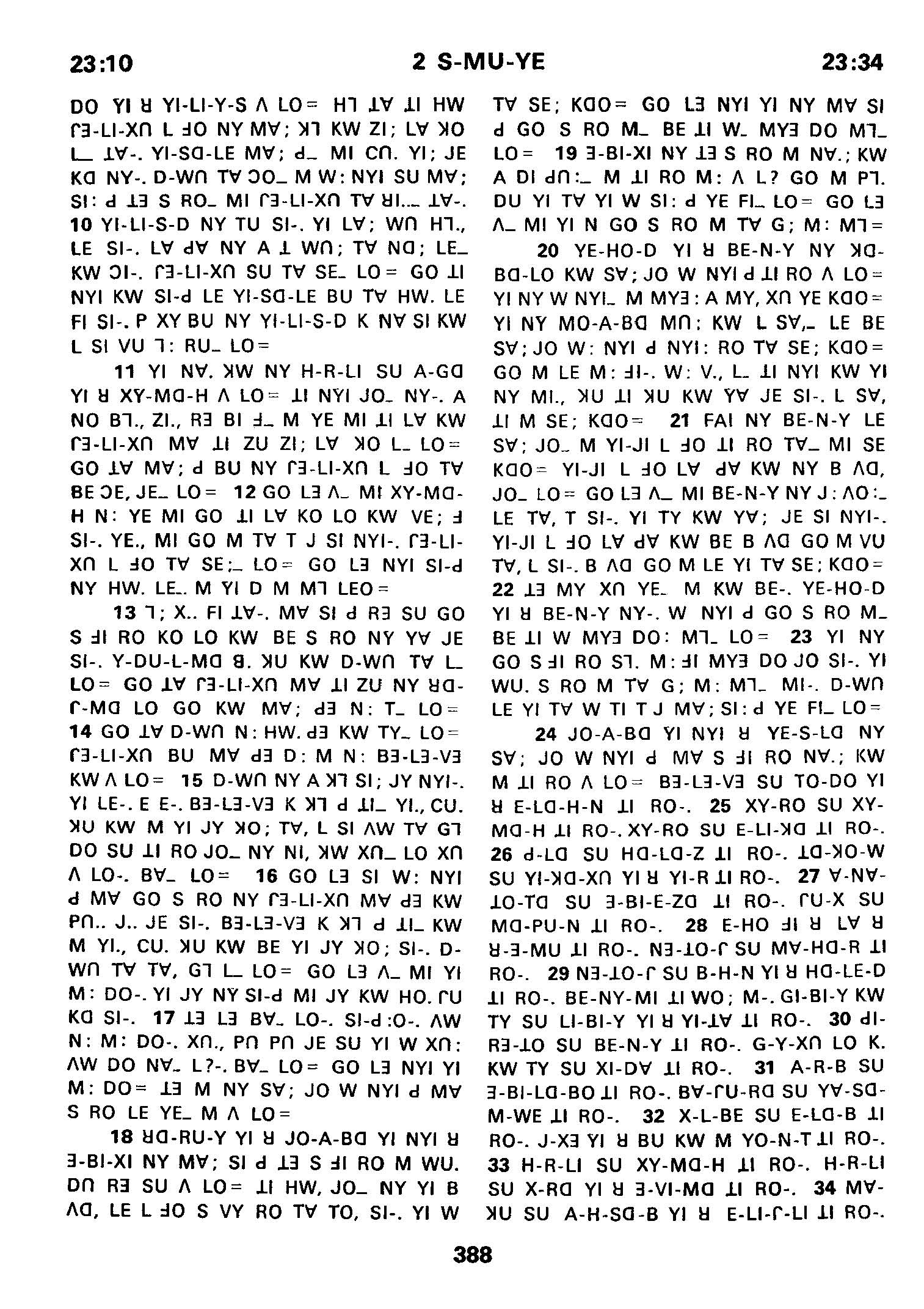 1980年傈僳語聖經全書 撒母耳記下 23 章 10 節到 23 章 34 節