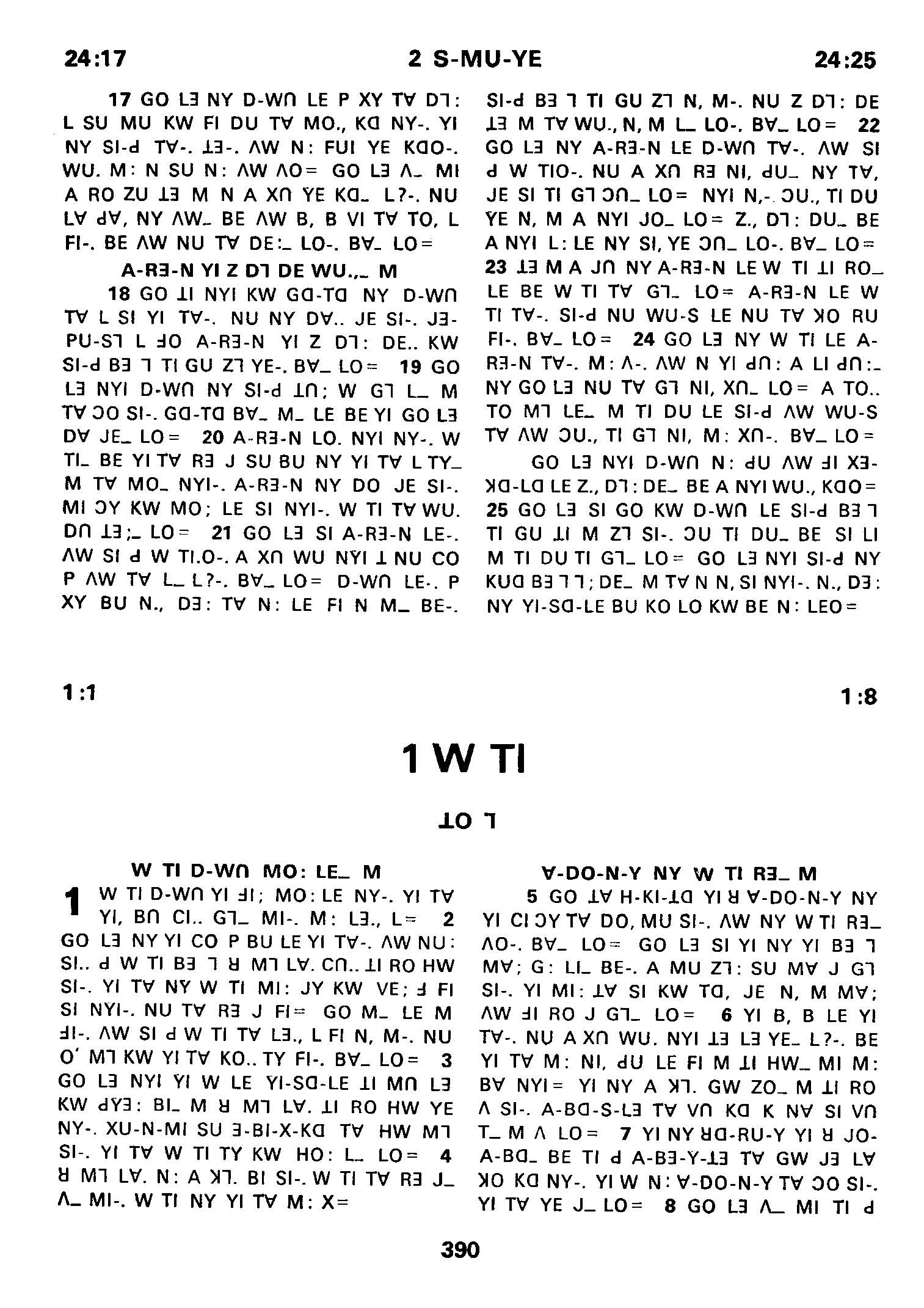 1980年傈僳語聖經全書 撒母耳記下 24 章 17 節到 24 章 25 節