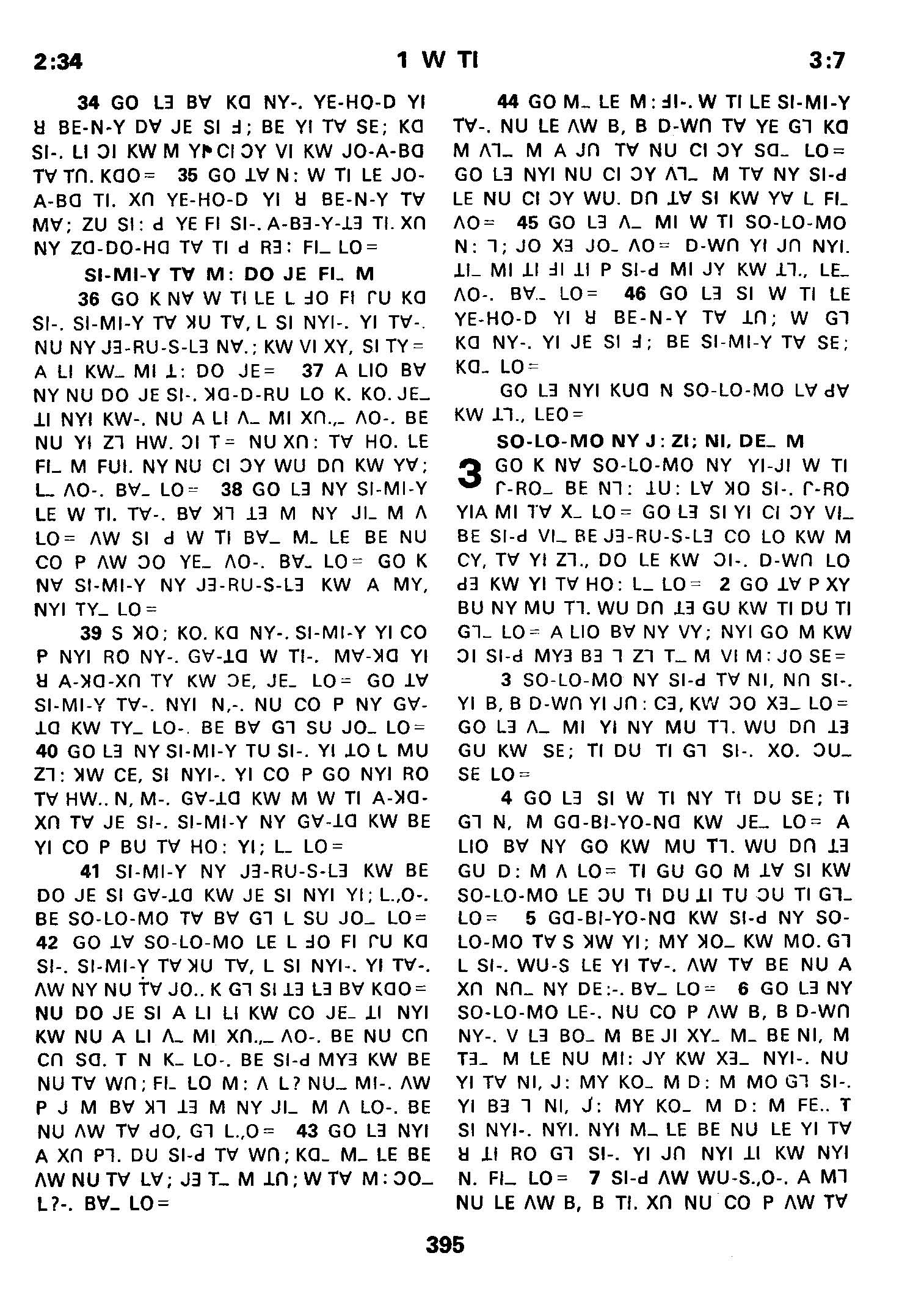 1980年傈僳語聖經全書 列王紀上 2 章 34 節到 3 章 7 節