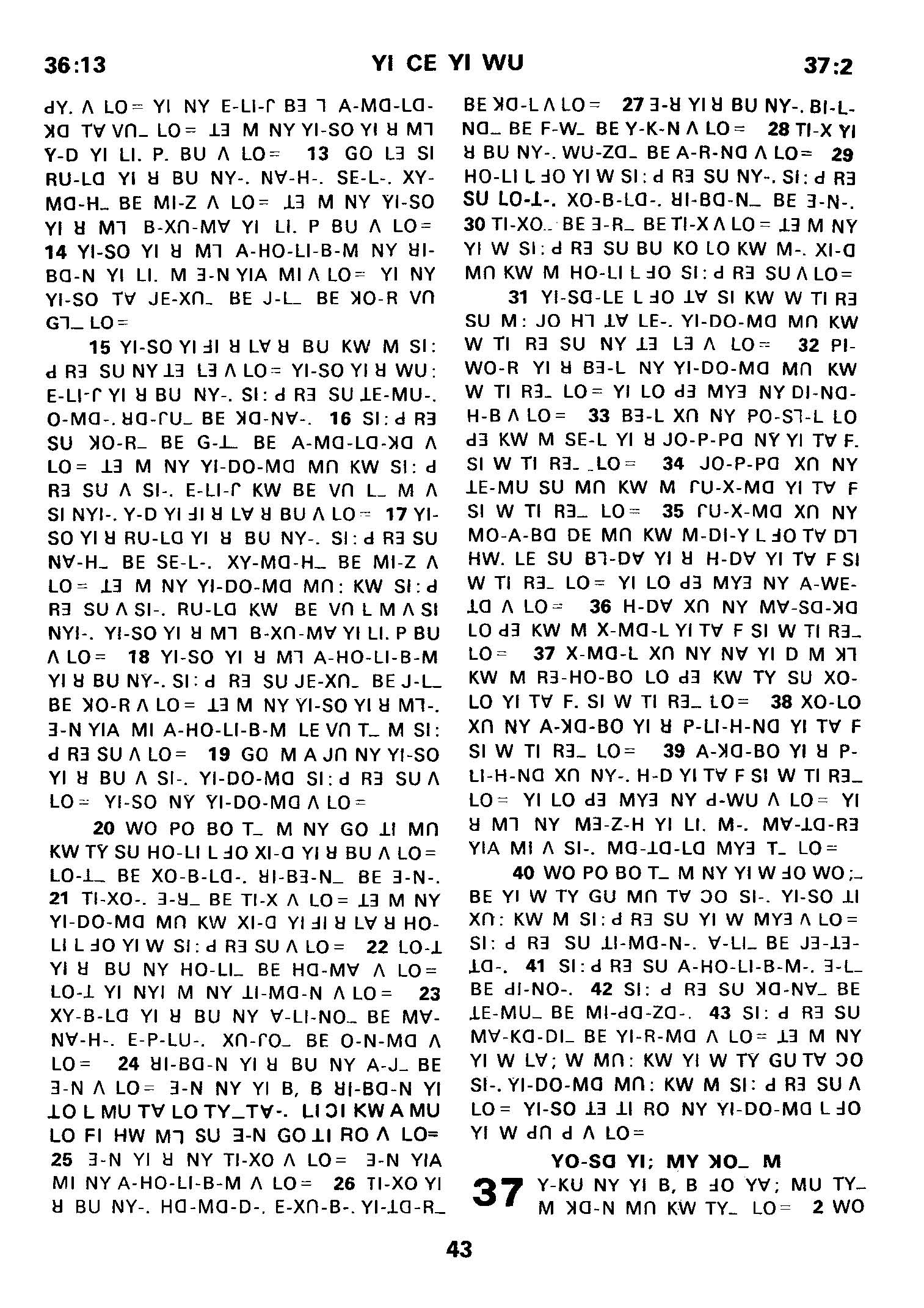 1980年傈僳語聖經全書 創世記 36 章 13 節到 37 章 2 節