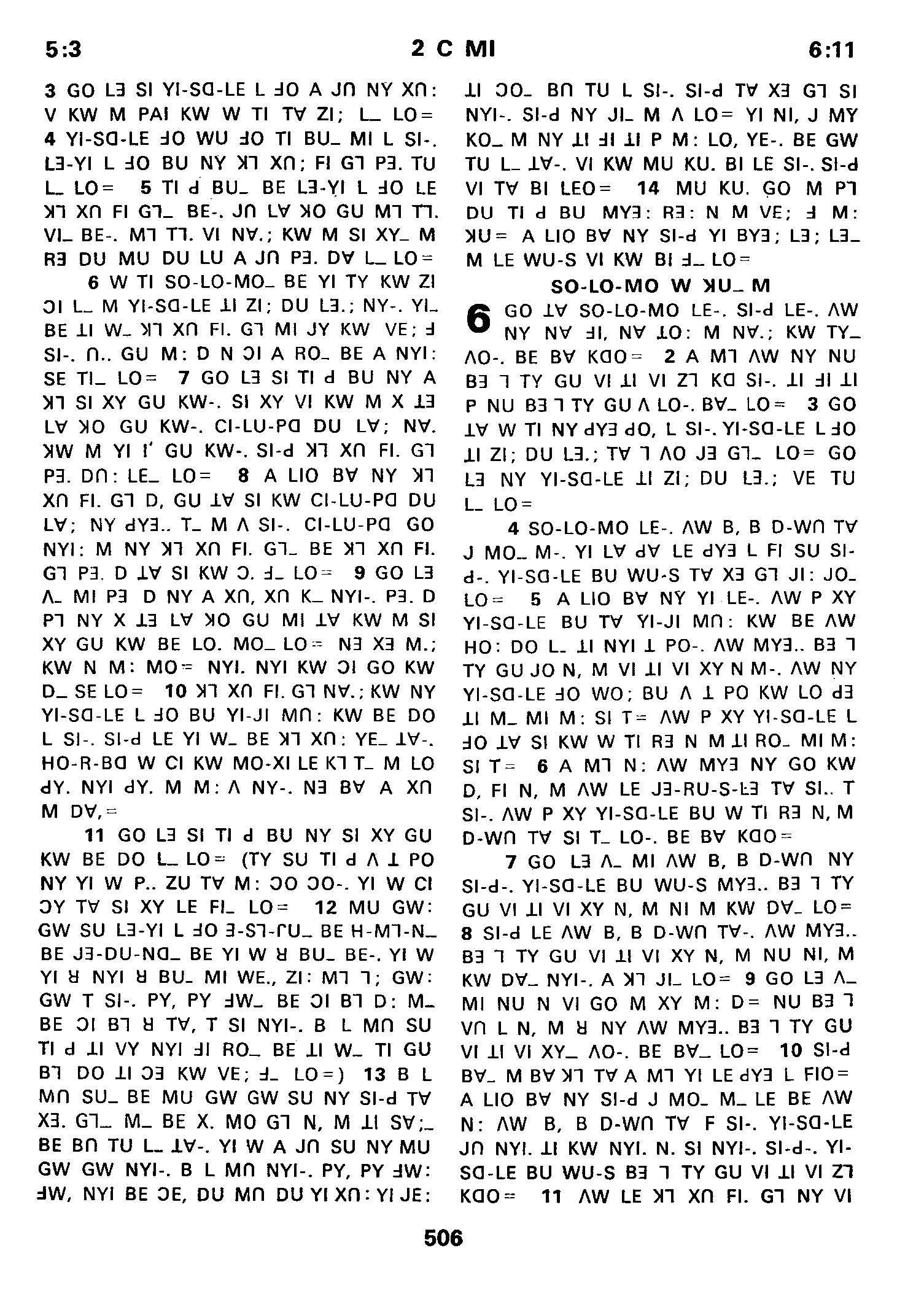 1980年傈僳語聖經全書 歷代志下 5 章 3 節到 6 章 11 節
