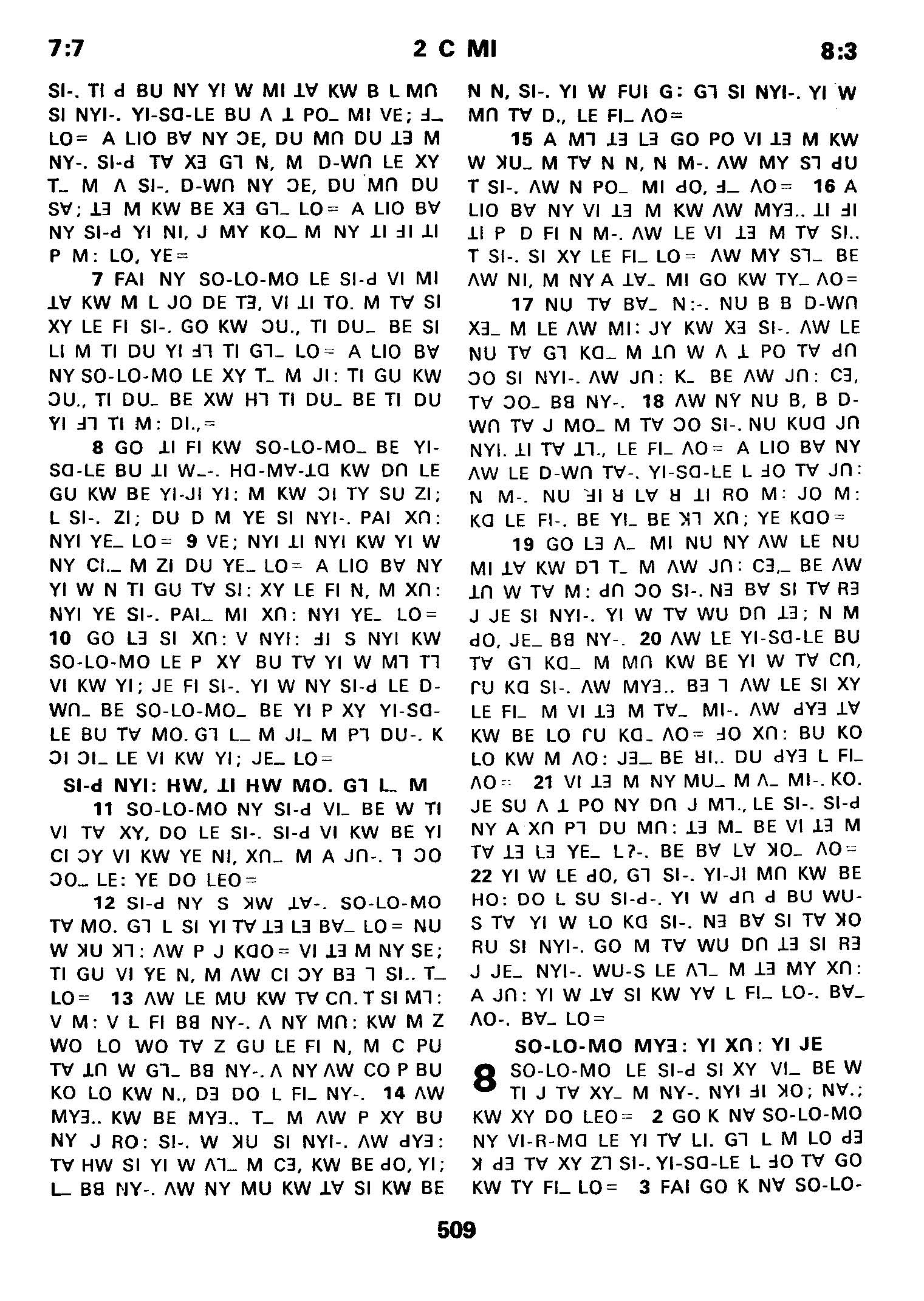 1980年傈僳語聖經全書 歷代志下 7 章 7 節到 8 章 3 節