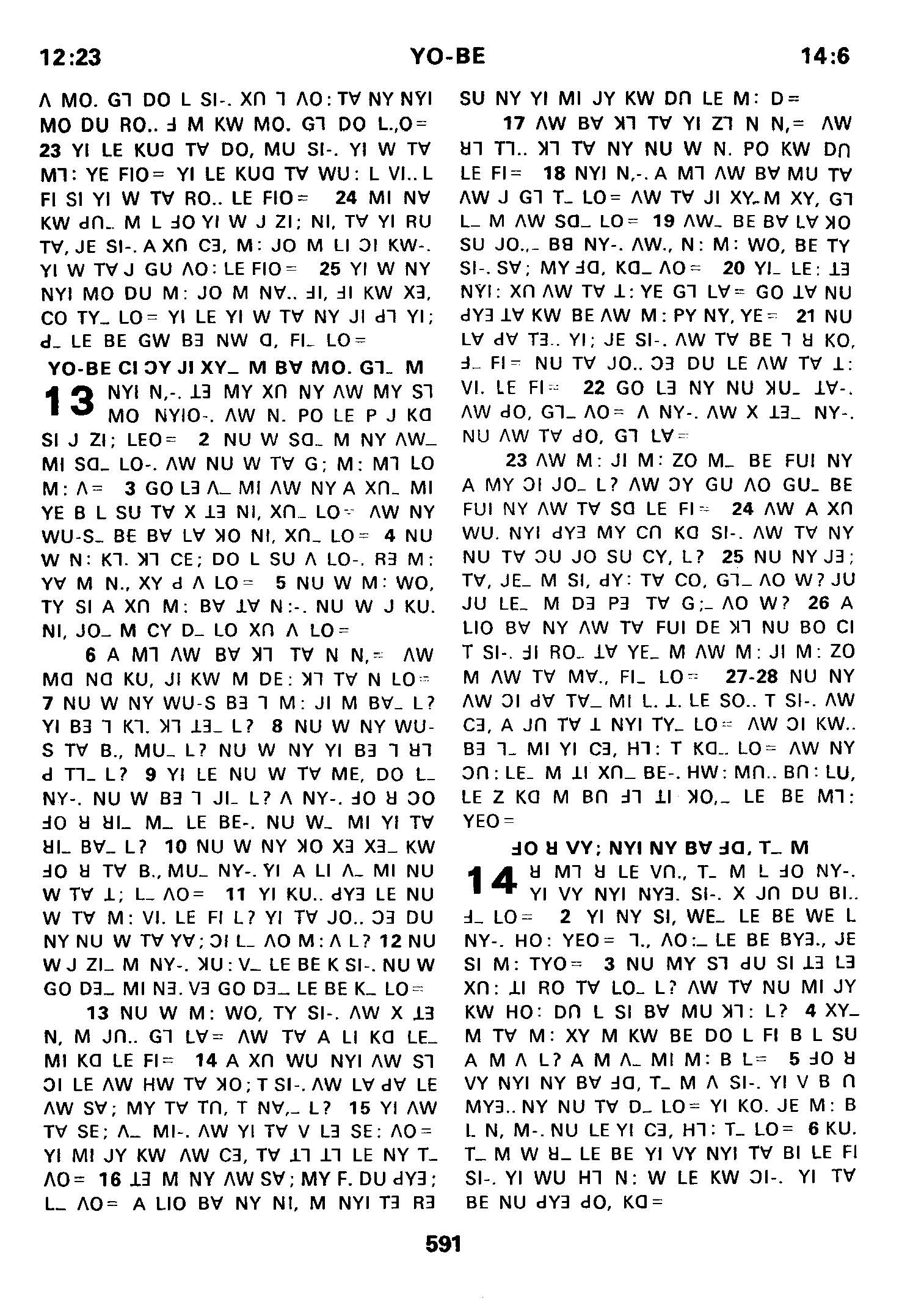 1980年傈僳語聖經全書 約伯記 12 章 23 節到 14 章 6 節