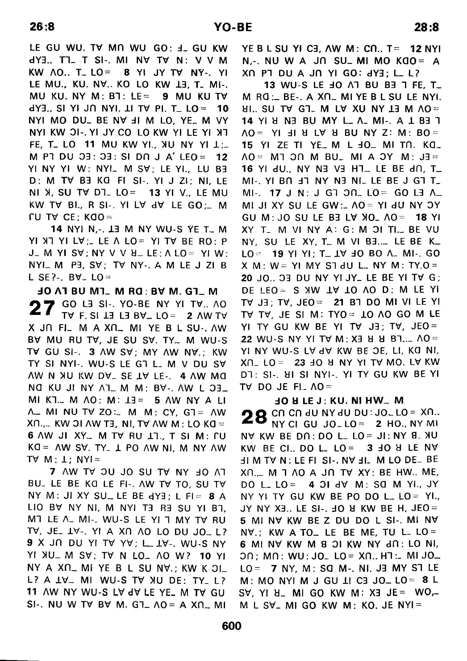 1980年傈僳語聖經全書 約伯記 26 章 8 節到 28 章 8 節