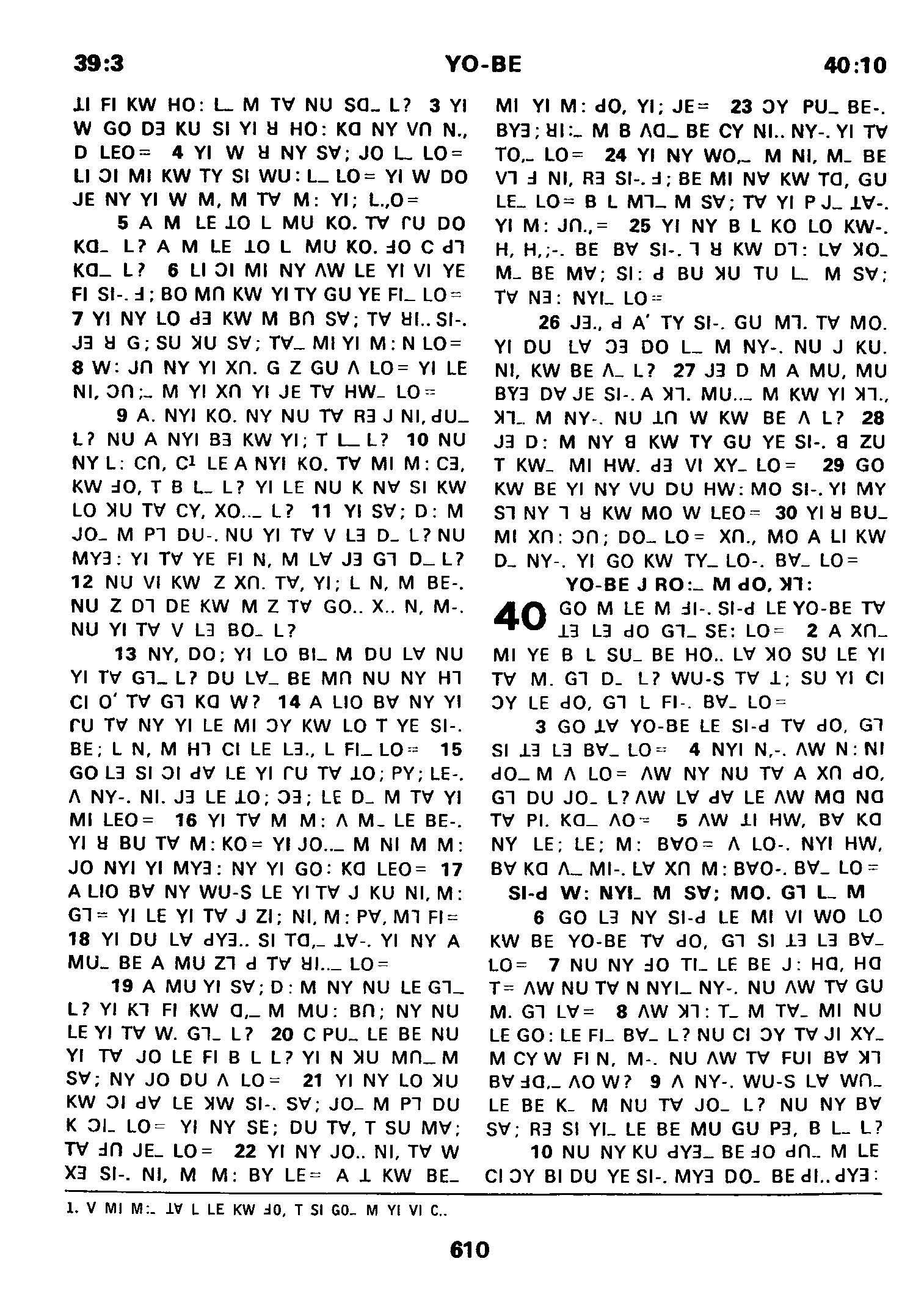 1980年傈僳語聖經全書 約伯記 39 章 3 節到 40 章 10 節