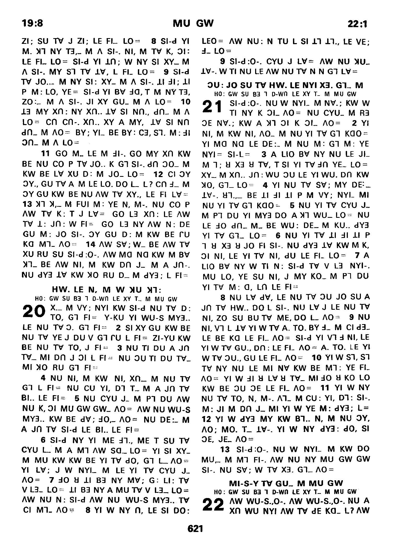 1980年傈僳語聖經全書 詩篇 19 章 8 節到 22 章 1 節