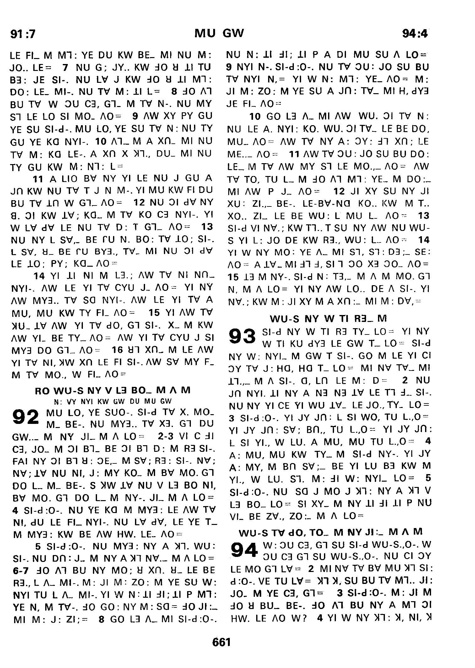 1980年傈僳語聖經全書 詩篇 91 章 7 節到 94 章 4 節