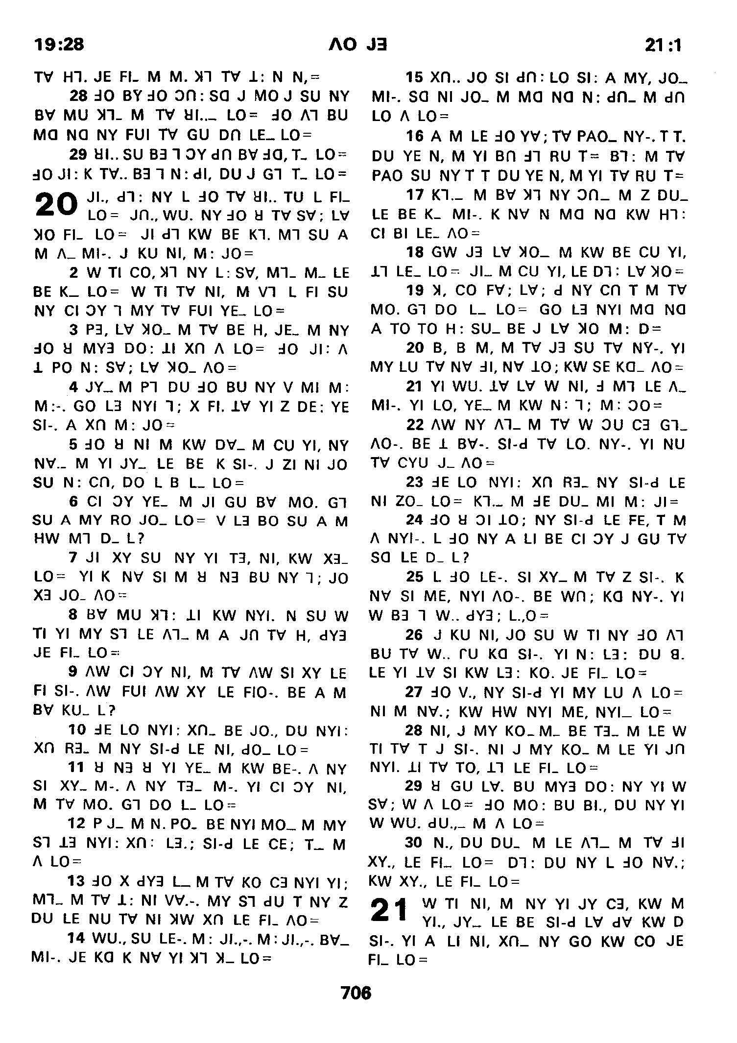 1980年傈僳語聖經全書 箴言 19 章 28 節到 21 章 1 節