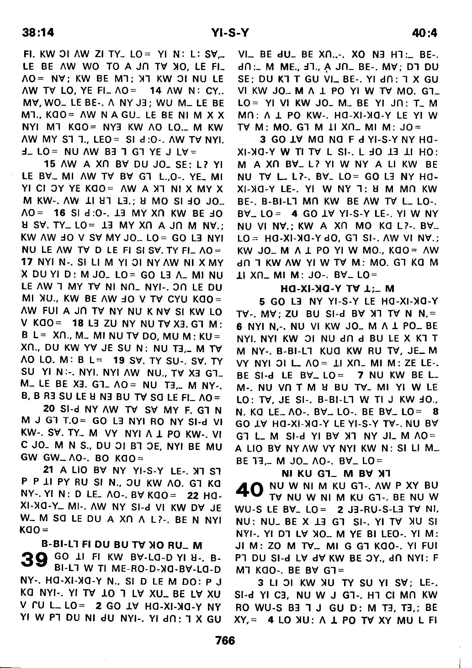 1980年傈僳語聖經全書 以賽亞書 38 章 14 節到 40 章 4 節
