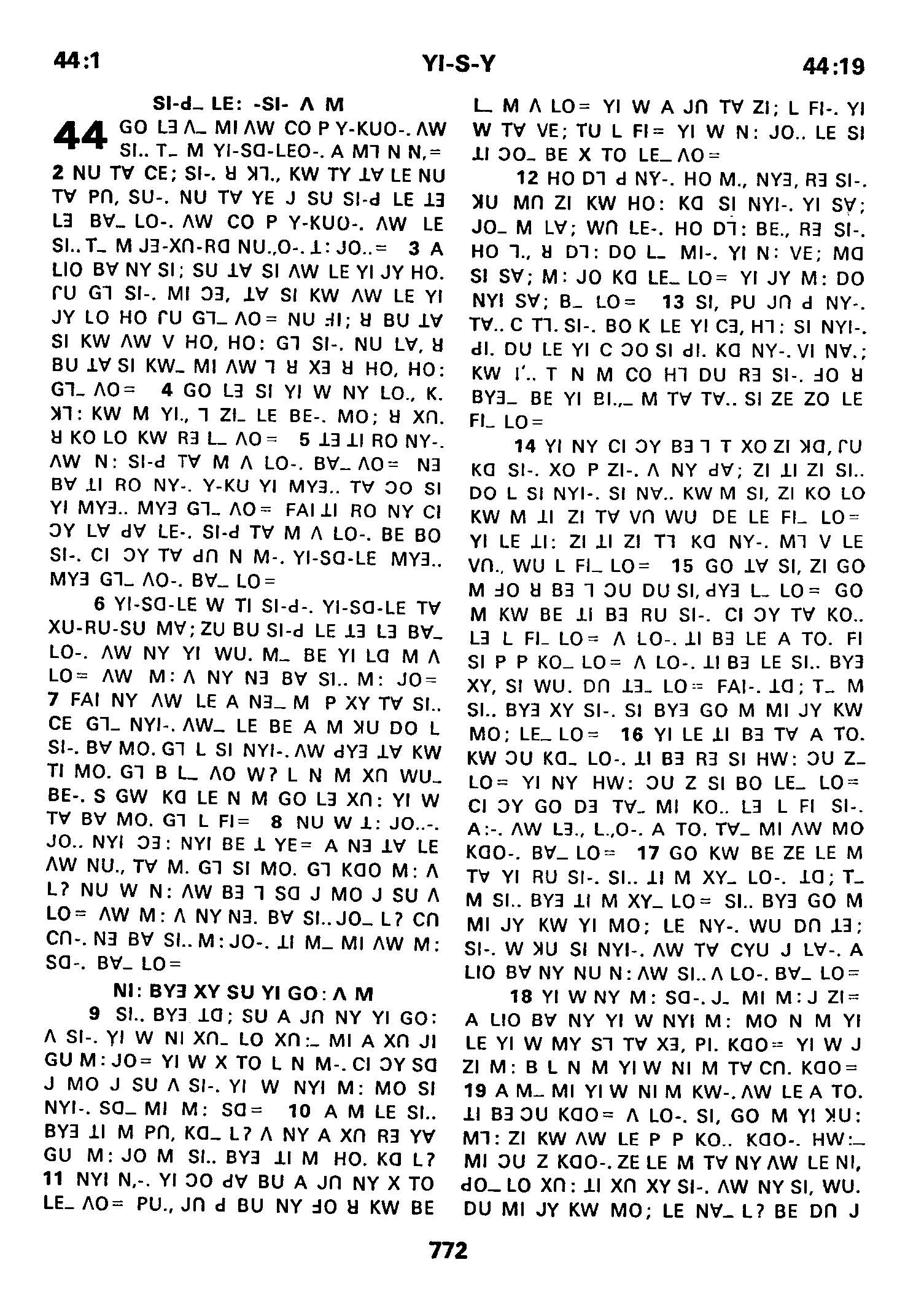 1980年傈僳語聖經全書 以賽亞書 44 章 1 節到 44 章 19 節