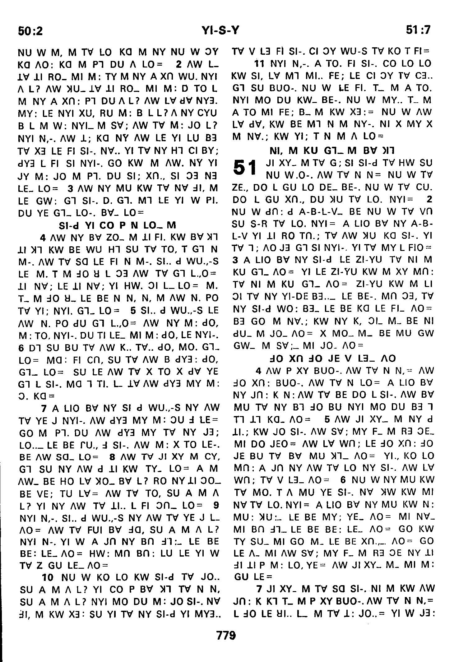 1980年傈僳語聖經全書 以賽亞書 50 章 2 節到 51 章 7 節