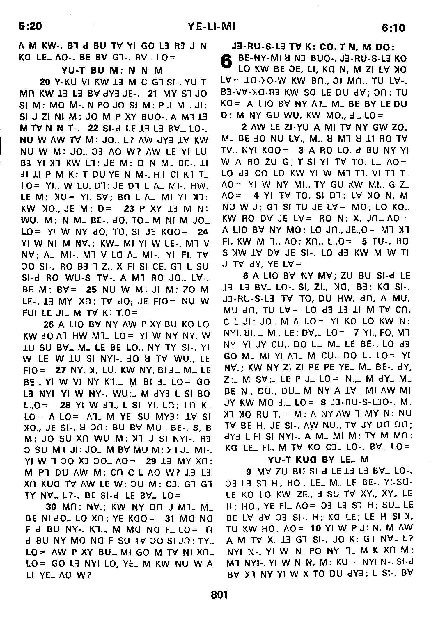 1980年傈僳語聖經全書 耶利米書 5 章 20 節到 6 章 10 節
