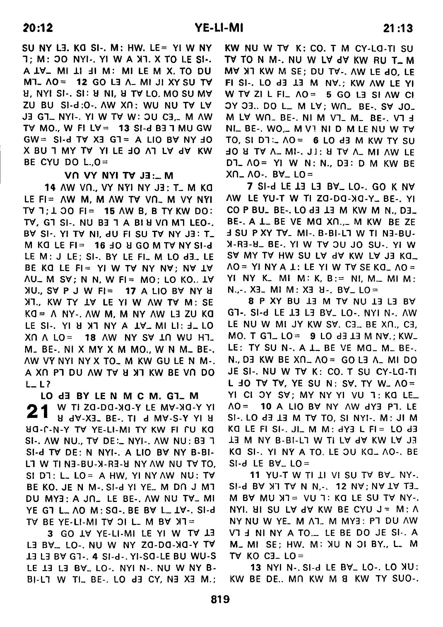 1980年傈僳語聖經全書 耶利米書 20 章 12 節到 21 章 13 節