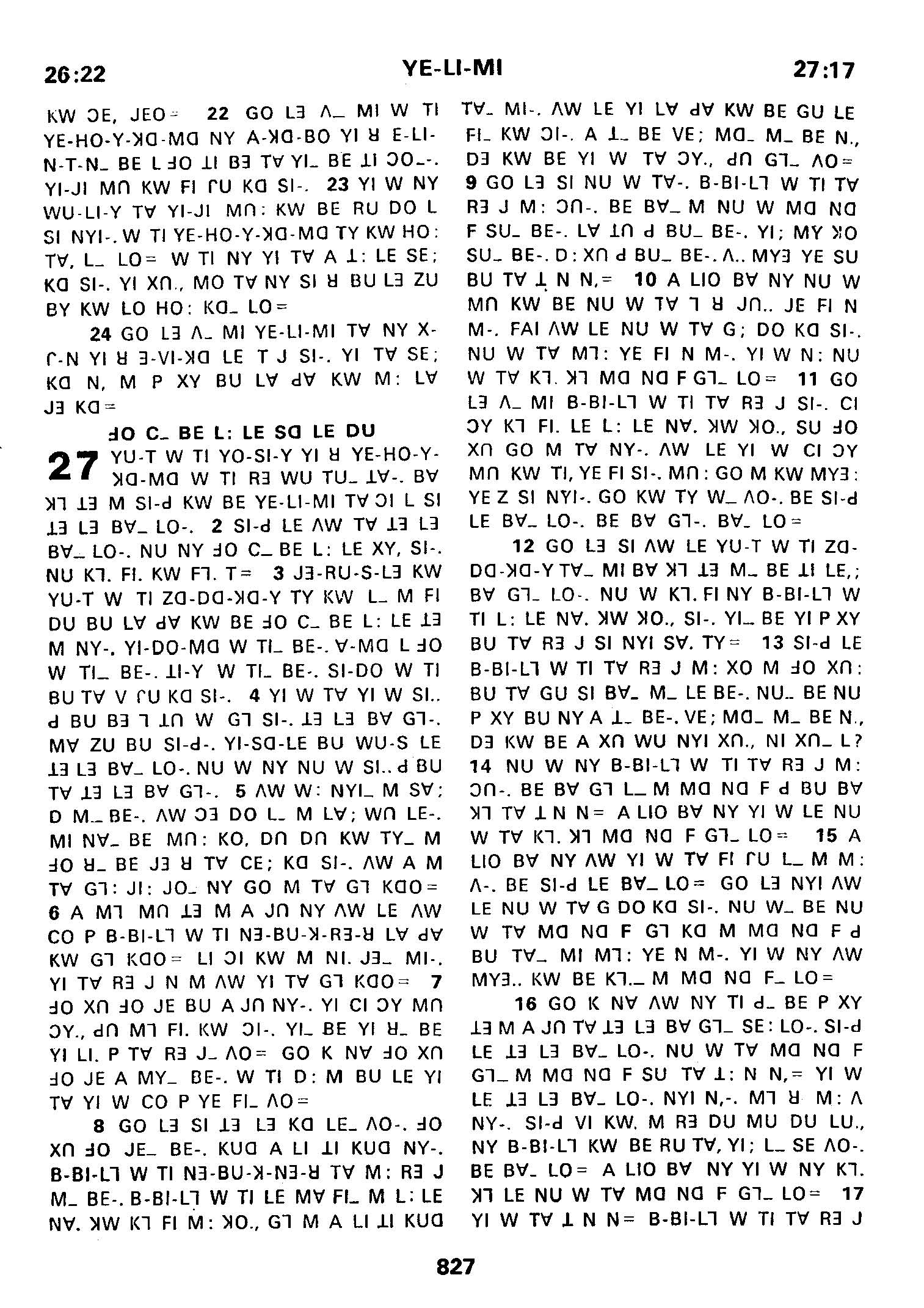 1980年傈僳語聖經全書 耶利米書 26 章 22 節到 27 章 17 節