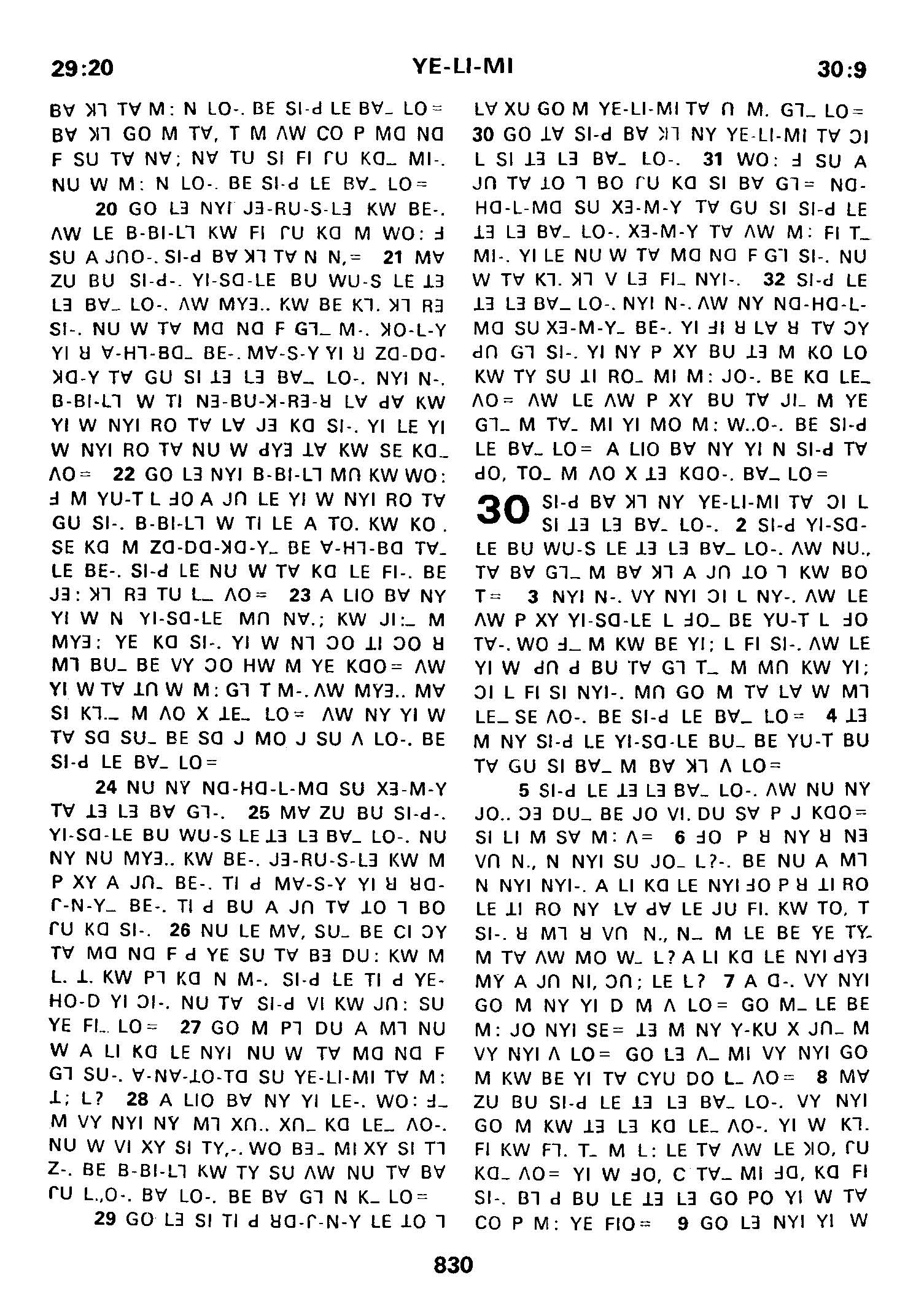 1980年傈僳語聖經全書 耶利米書 29 章 20 節到 30 章 9 節