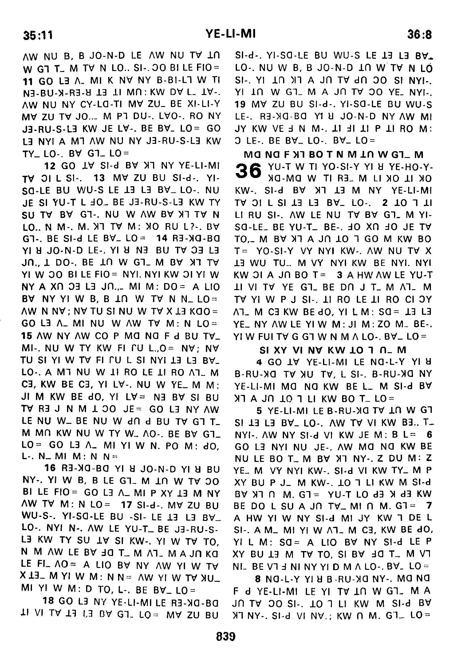 1980年傈僳語聖經全書 耶利米書 35 章 11 節到 36 章 8 節