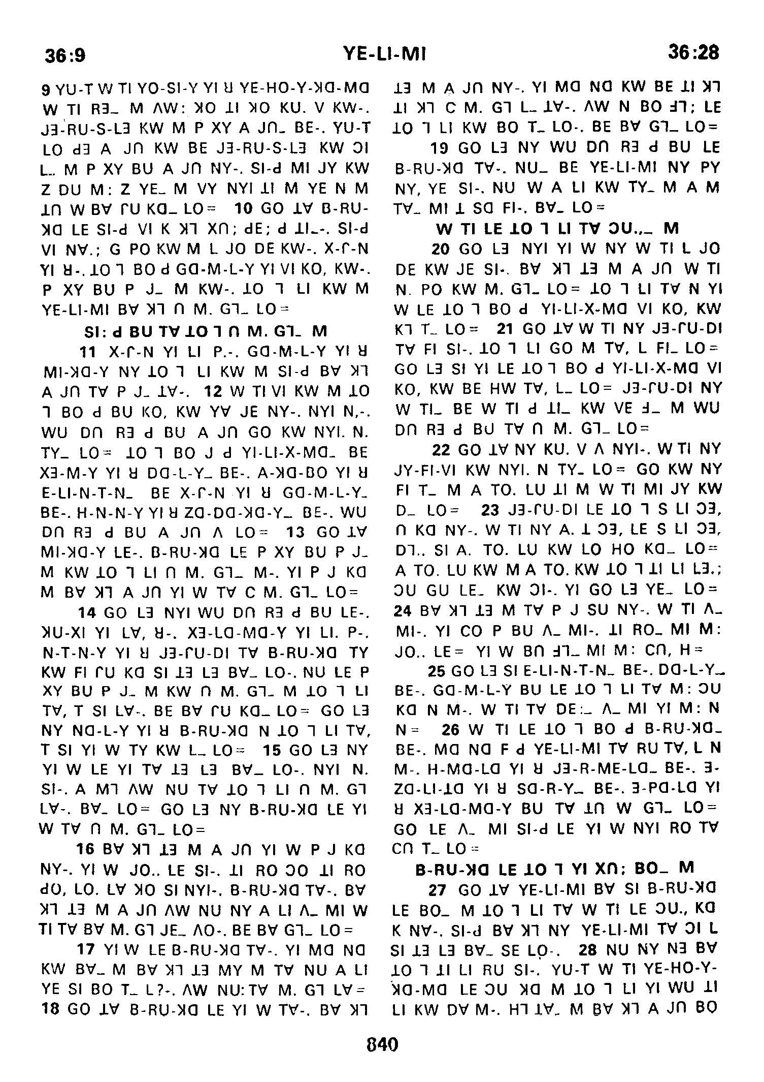 1980年傈僳語聖經全書 耶利米書 36 章 9 節到 36 章 28 節