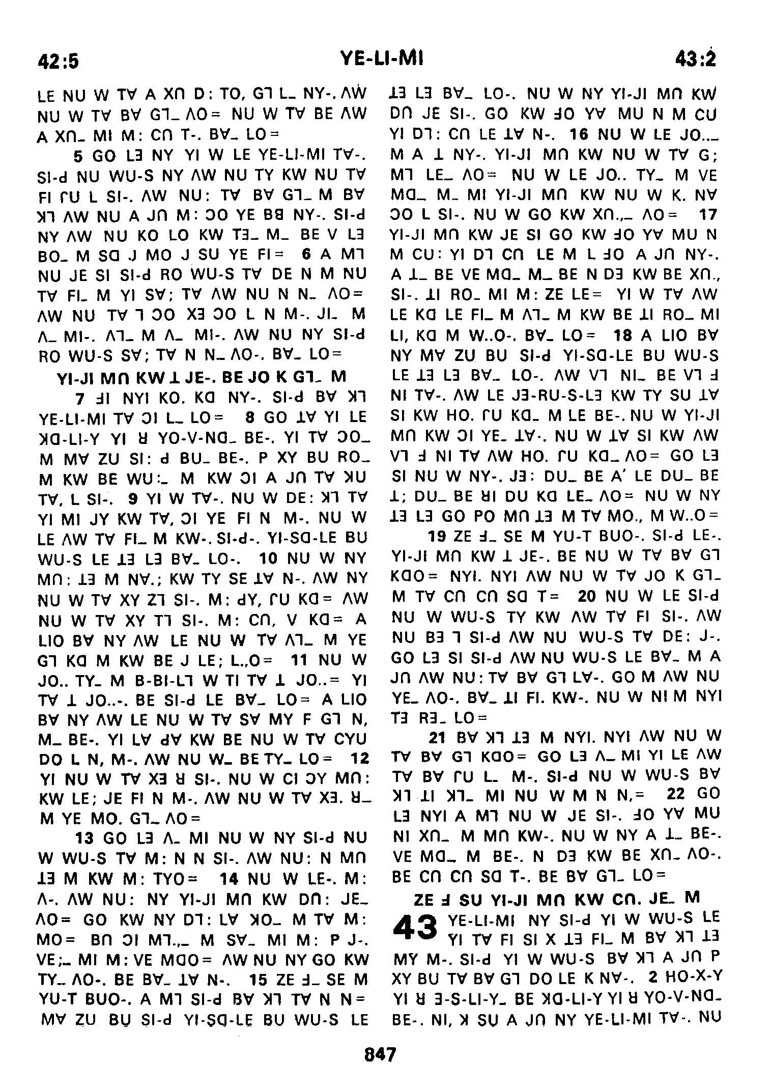 1980年傈僳語聖經全書 耶利米書 42 章 5 節到 43 章 2 節