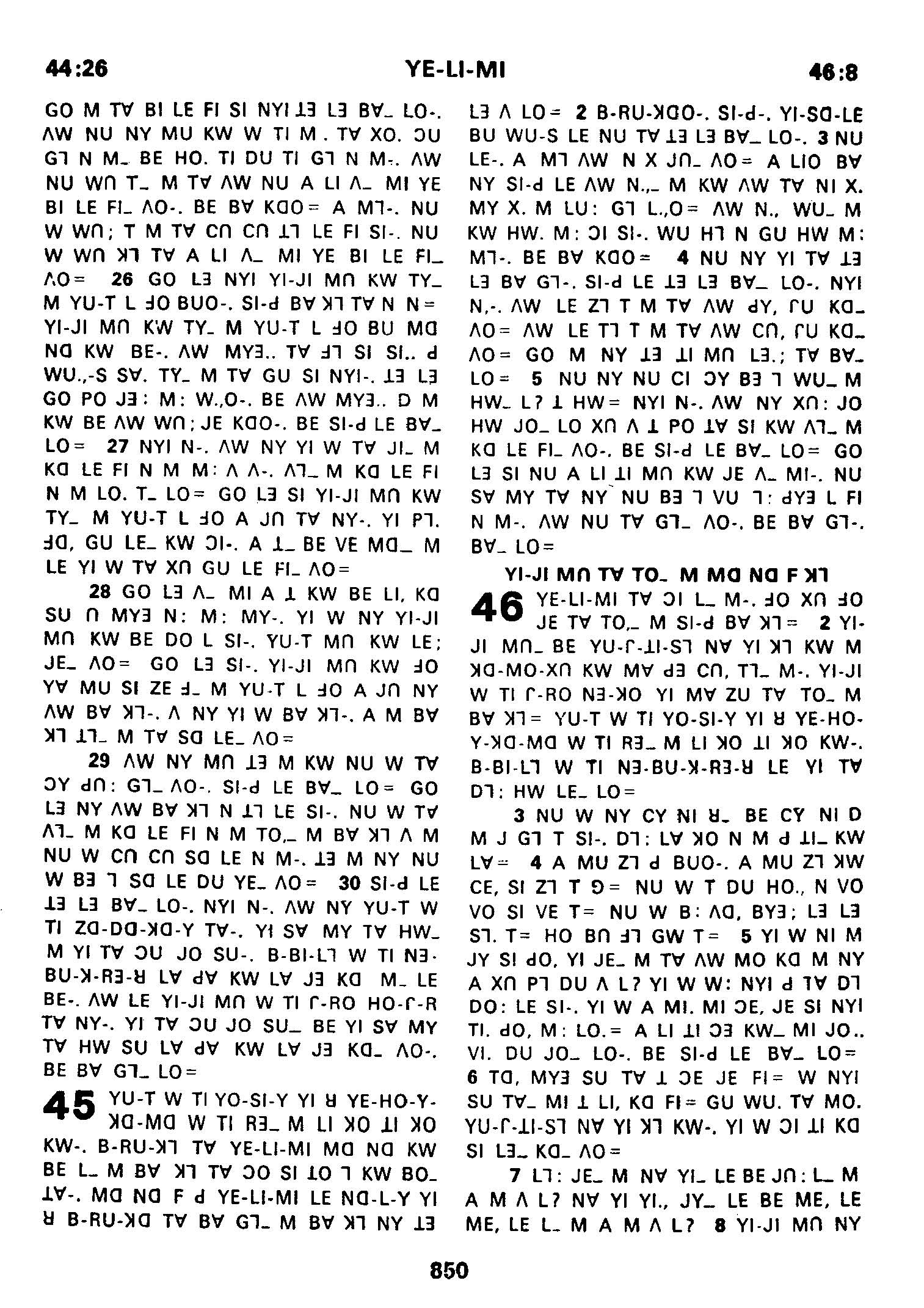 1980年傈僳語聖經全書 耶利米書 44 章 26 節到 46 章 8 節