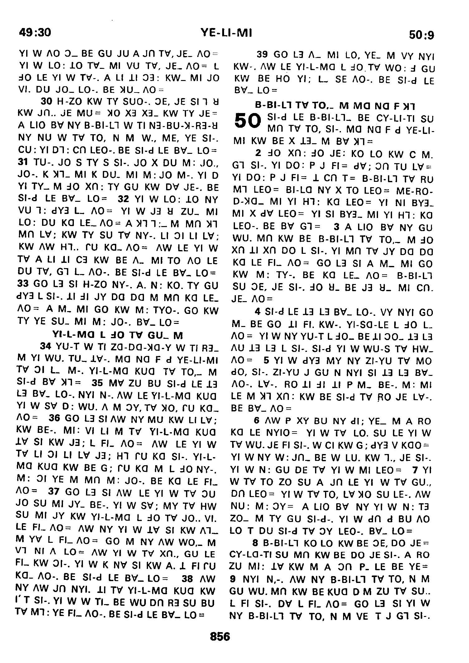 1980年傈僳語聖經全書 耶利米書 49 章 30 節到 50 章 9 節