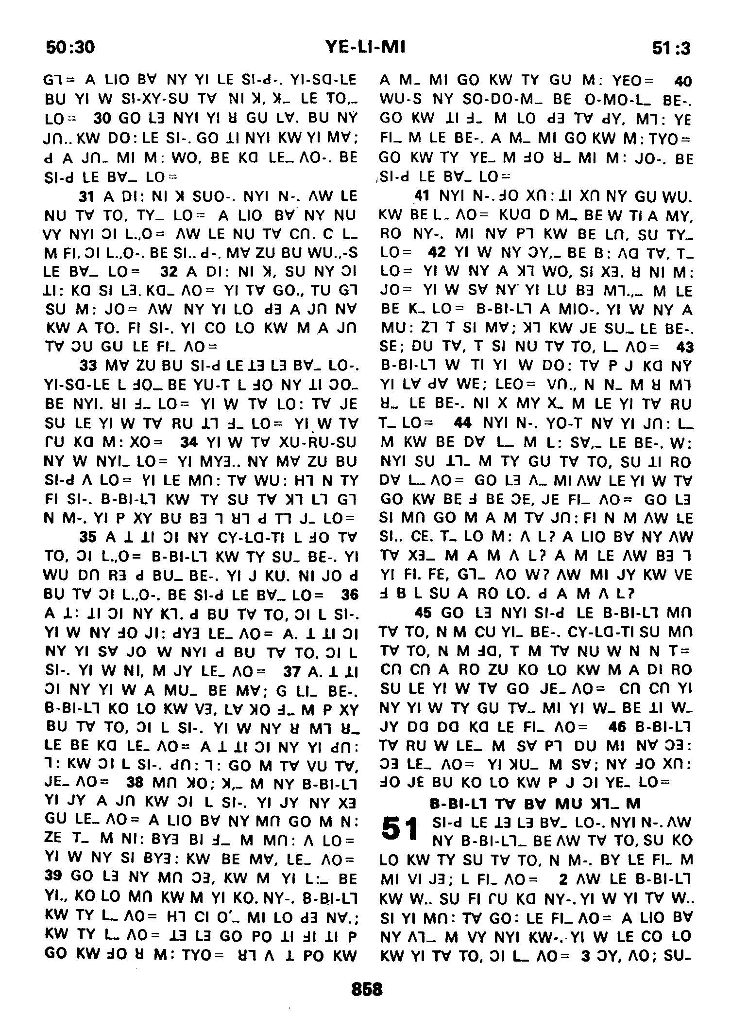 1980年傈僳語聖經全書 耶利米書 50 章 30 節到 51 章 3 節