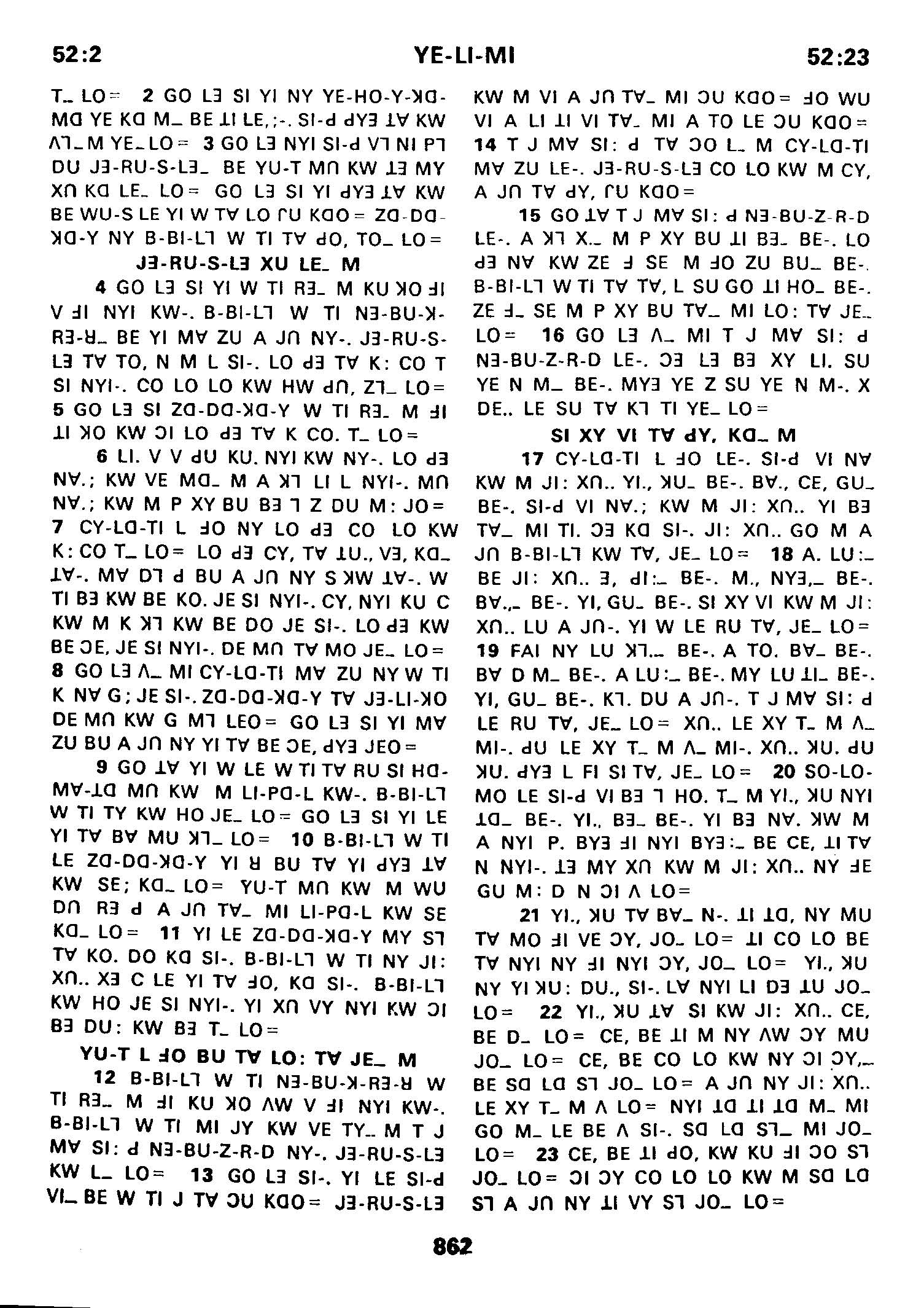 1980年傈僳語聖經全書 耶利米書 52 章 2 節到 52 章 23 節