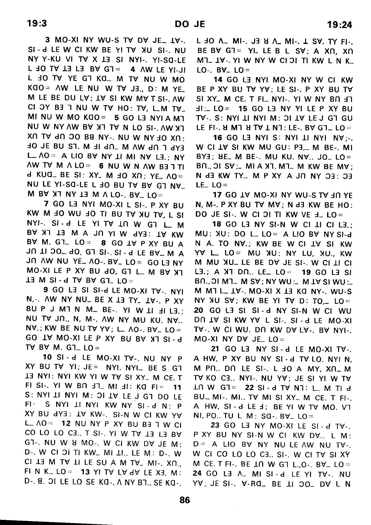 1980年傈僳語聖經全書 出埃及記 19 章 3 節到 19 章 24 節