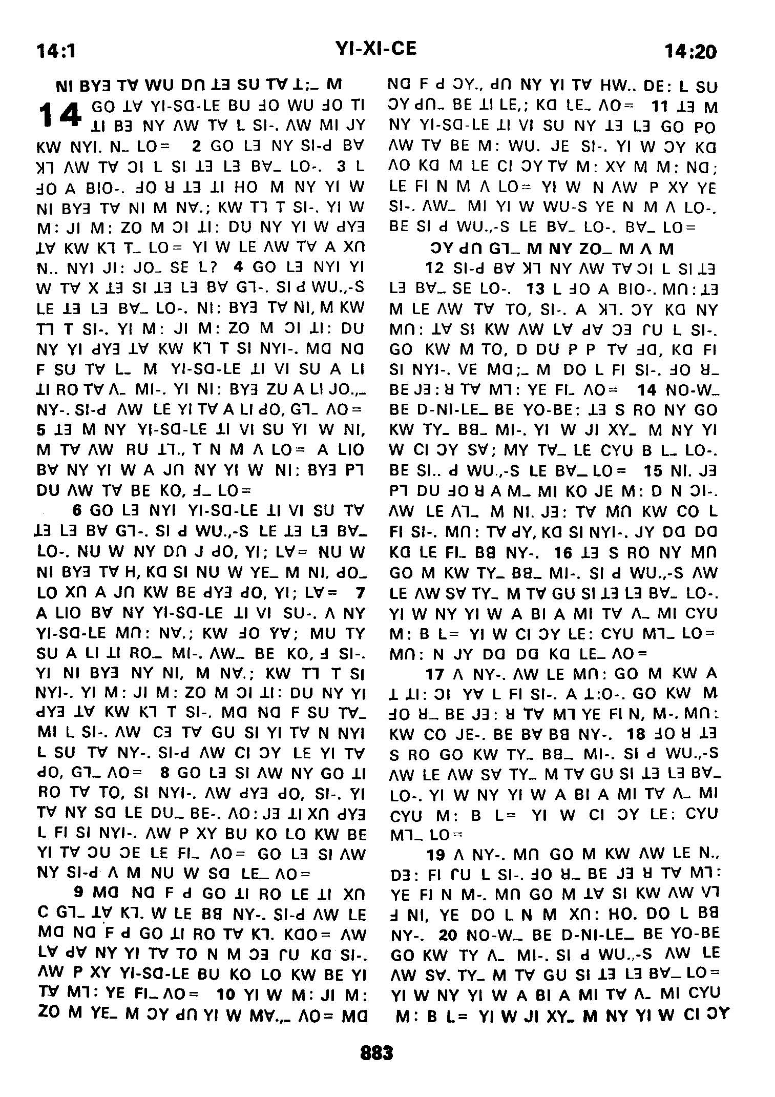 1980年傈僳語聖經全書 以西結書 14 章 1 節到 14 章 20 節