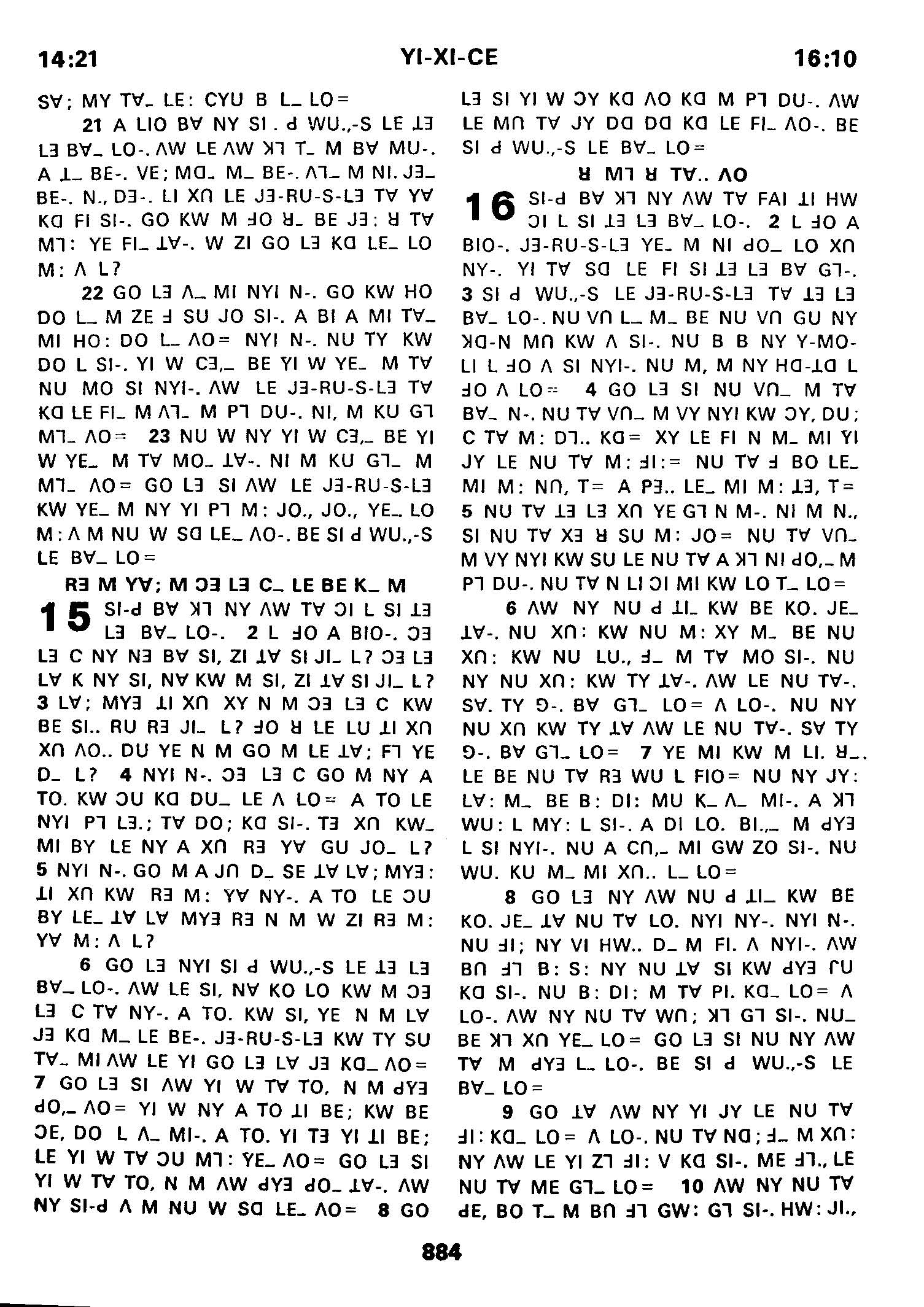 1980年傈僳語聖經全書 以西結書 14 章 21 節到 16 章 10 節
