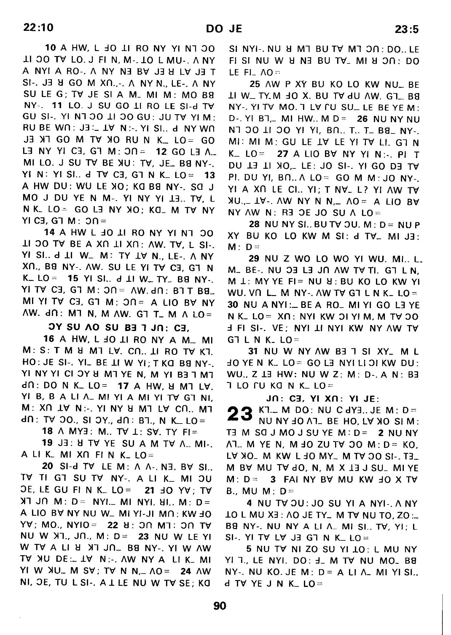 1980年傈僳語聖經全書 出埃及記 22 章 10 節到 23 章 5 節
