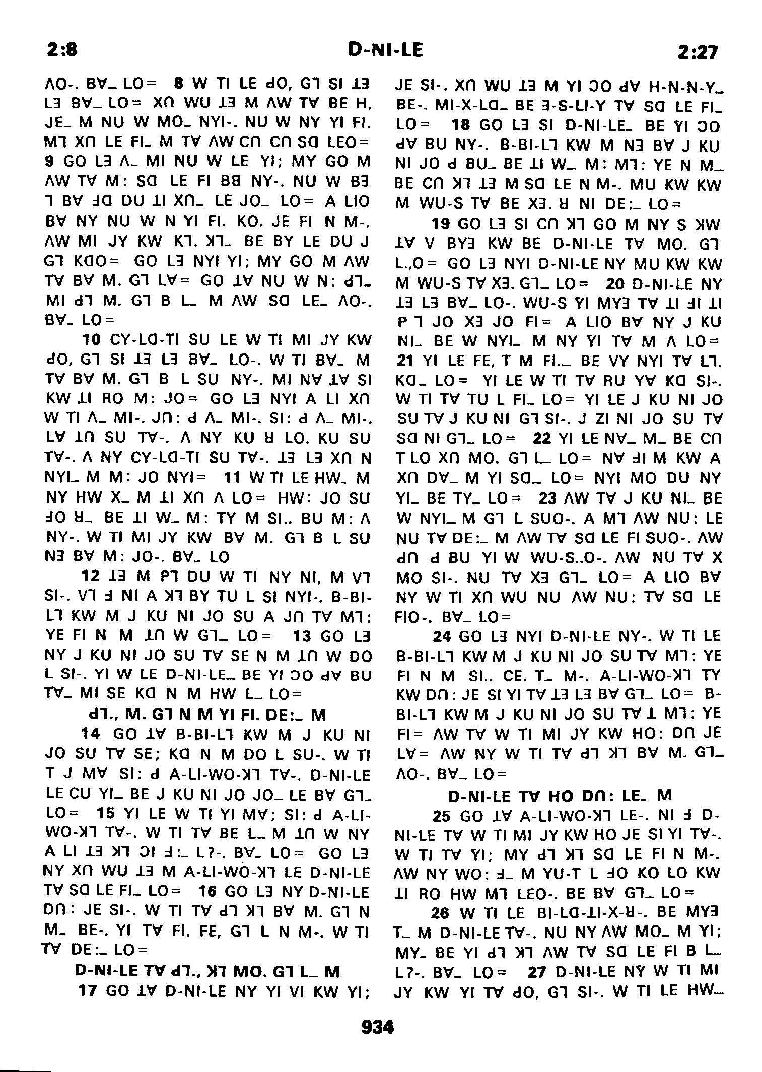 1980年傈僳語聖經全書 但以理書 2 章 8 節到 2 章 27 節