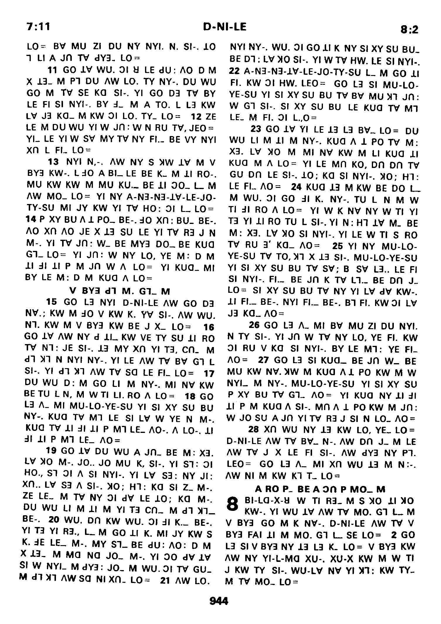 1980年傈僳語聖經全書 但以理書 7 章 11 節到 8 章 2 節