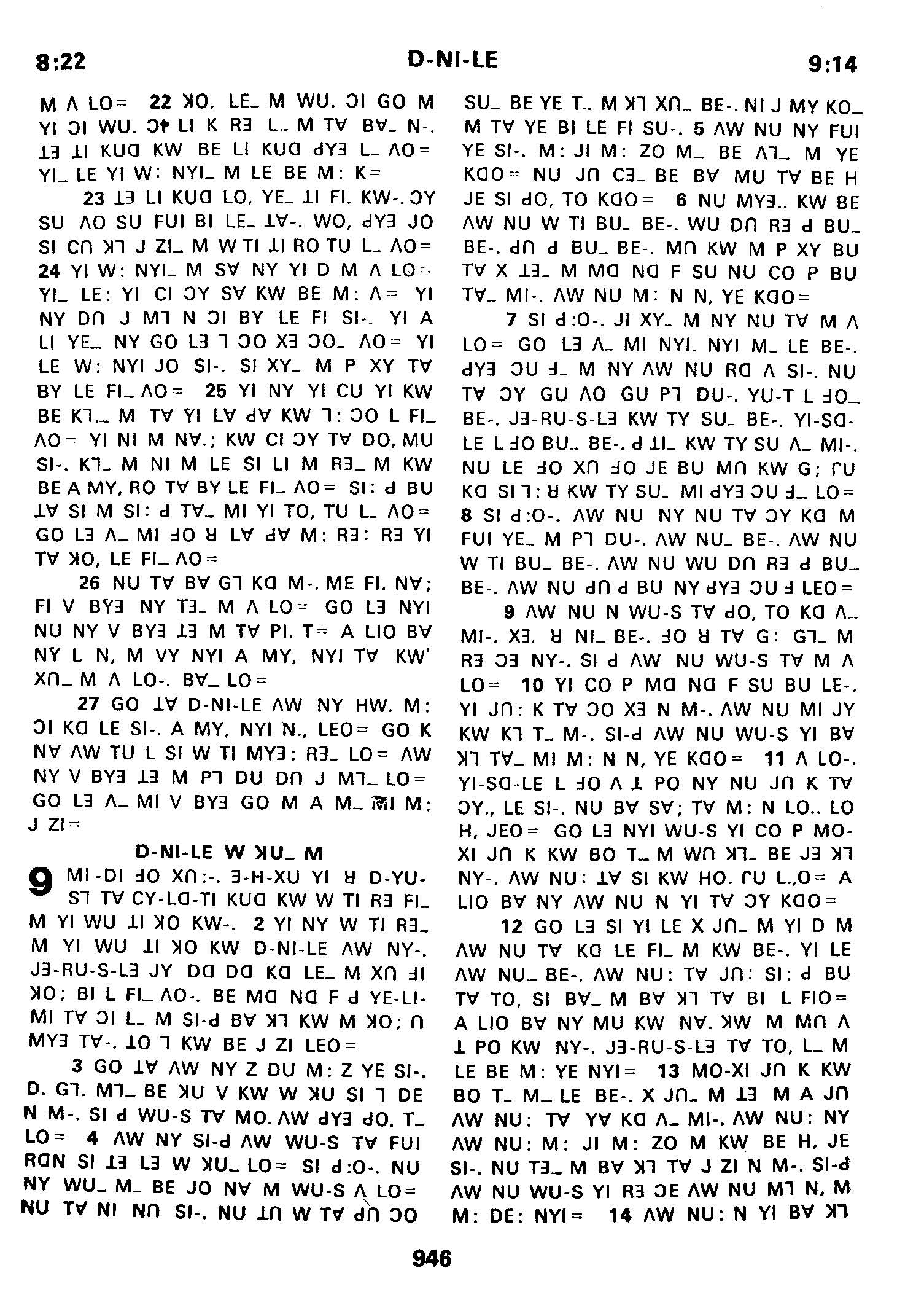 1980年傈僳語聖經全書 但以理書 8 章 22 節到 9 章 14 節