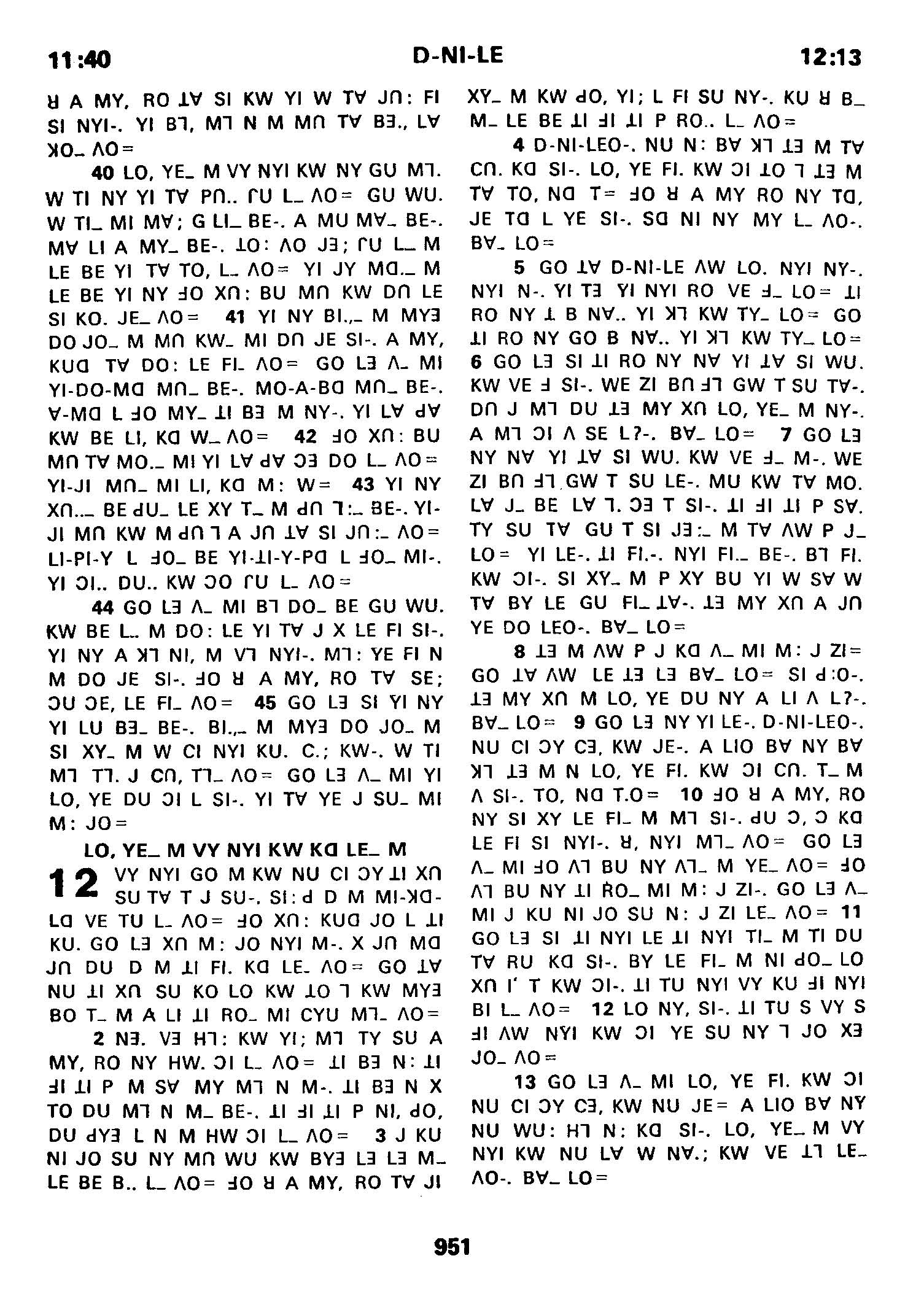 1980年傈僳語聖經全書 但以理書 11 章 40 節到 12 章 13 節