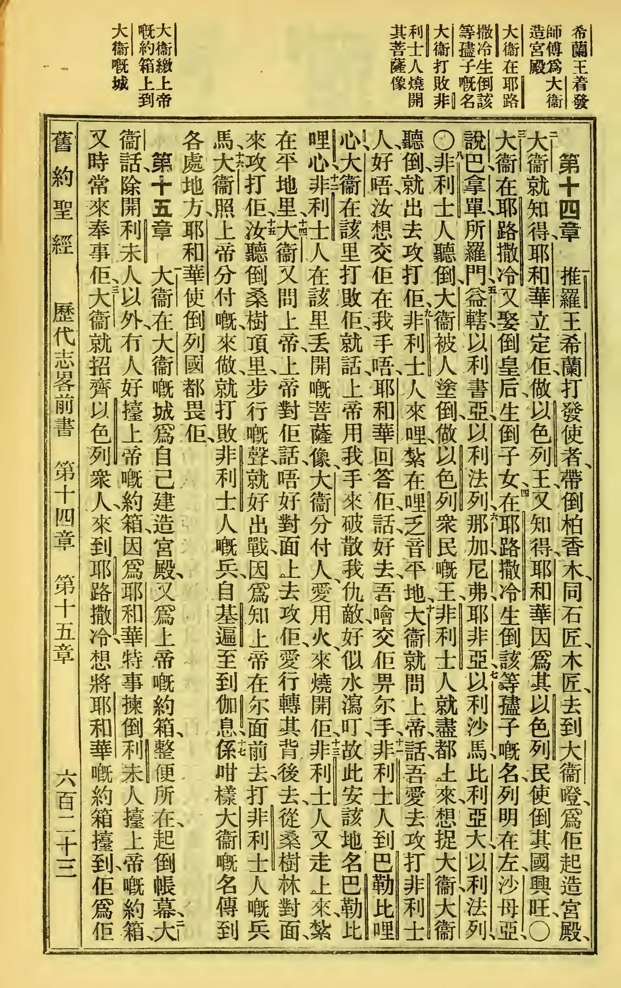 1923年聖經全書 歷代志上 14 章 1 節到 15 章 3 節