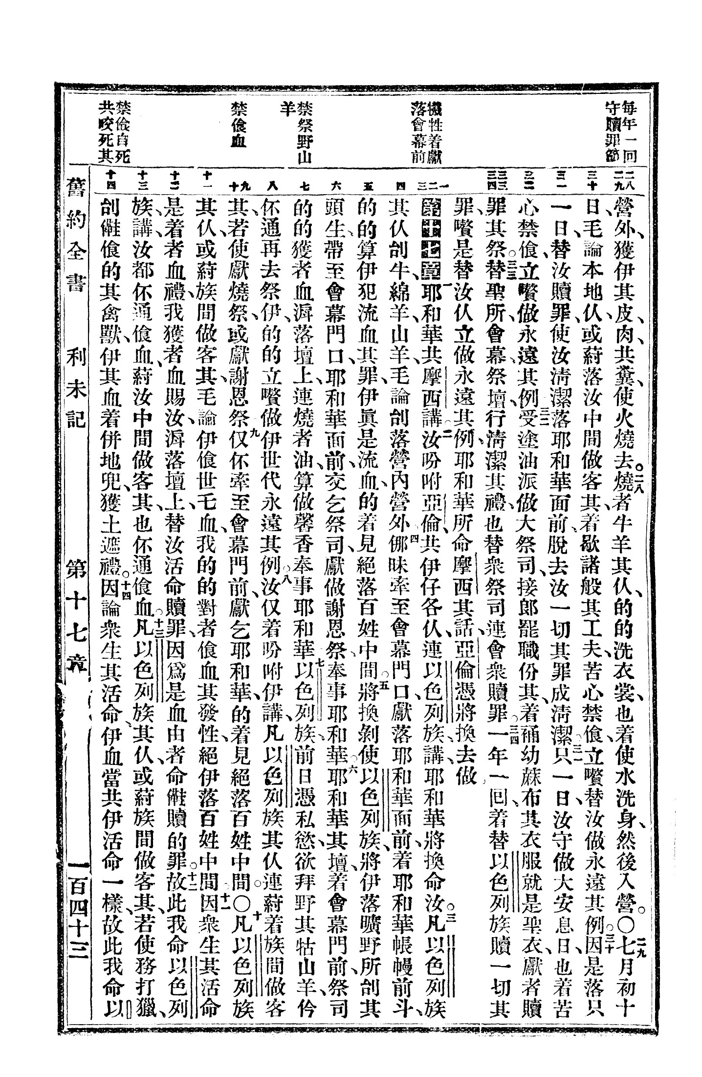 1940年福州土白《新舊約全書》 利未記 16 章 28 節到 17 章 14 節