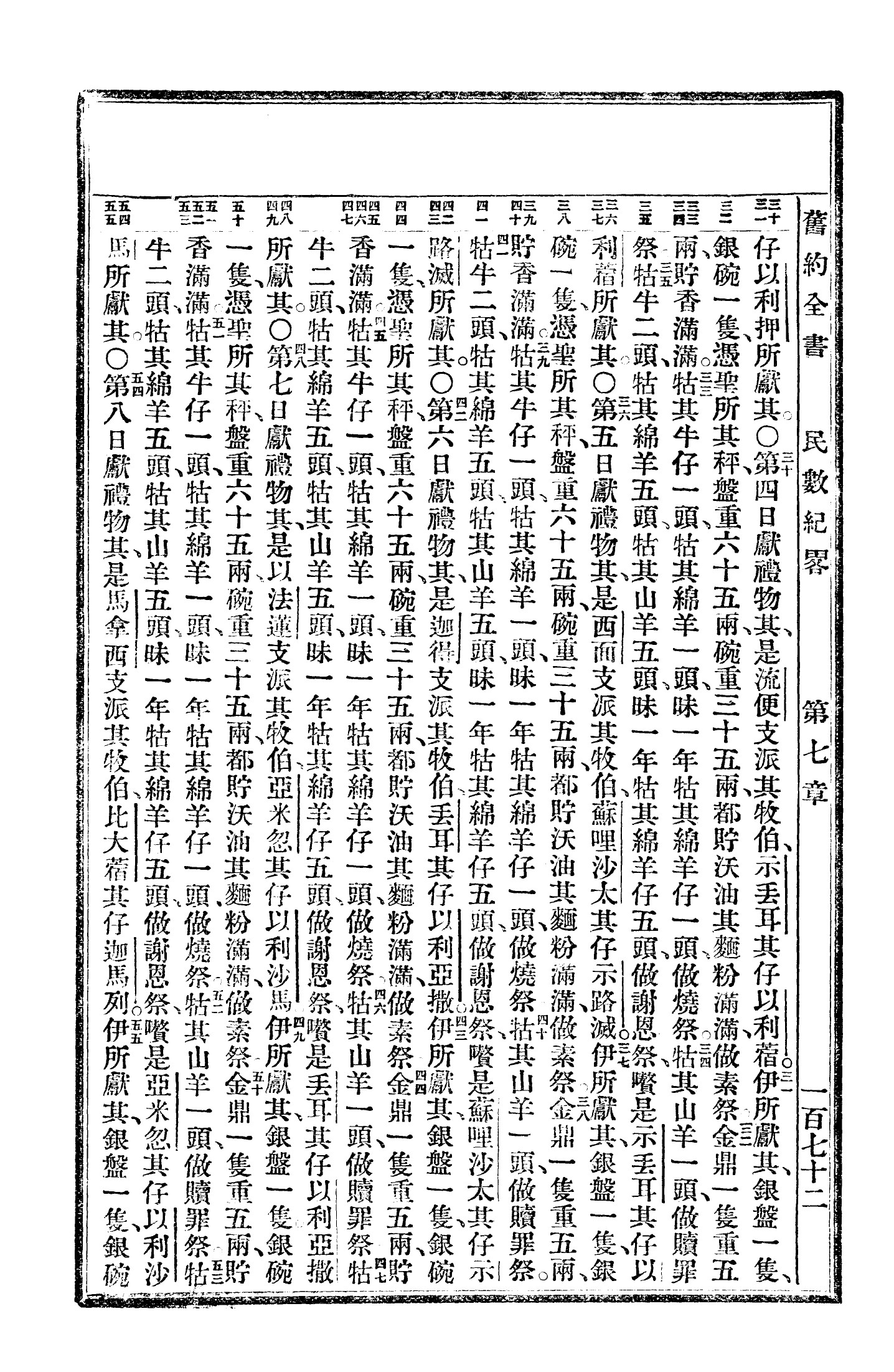1940年福州土白《新舊約全書》 民數記 7 章 30 節到 7 章 55 節
