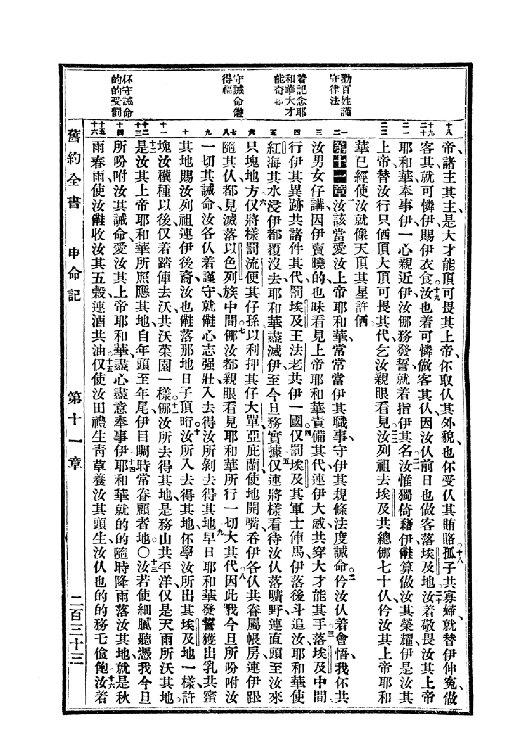 1940年福州土白《新舊約全書》 申命記 10 章 18 節到 11 章 16 節