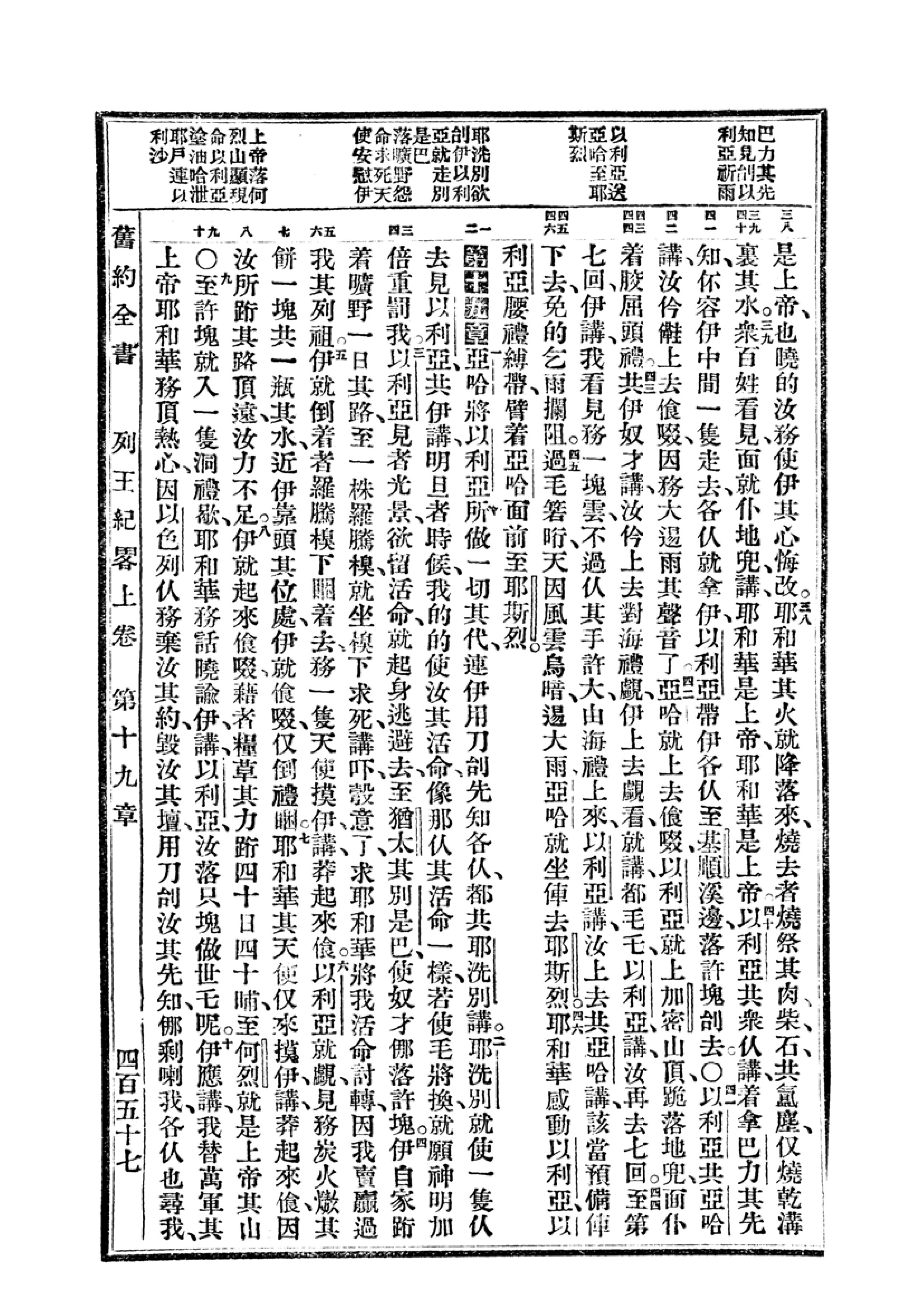 1940年福州土白《新舊約全書》 列王紀上 18 章 38 節到 19 章 10 節