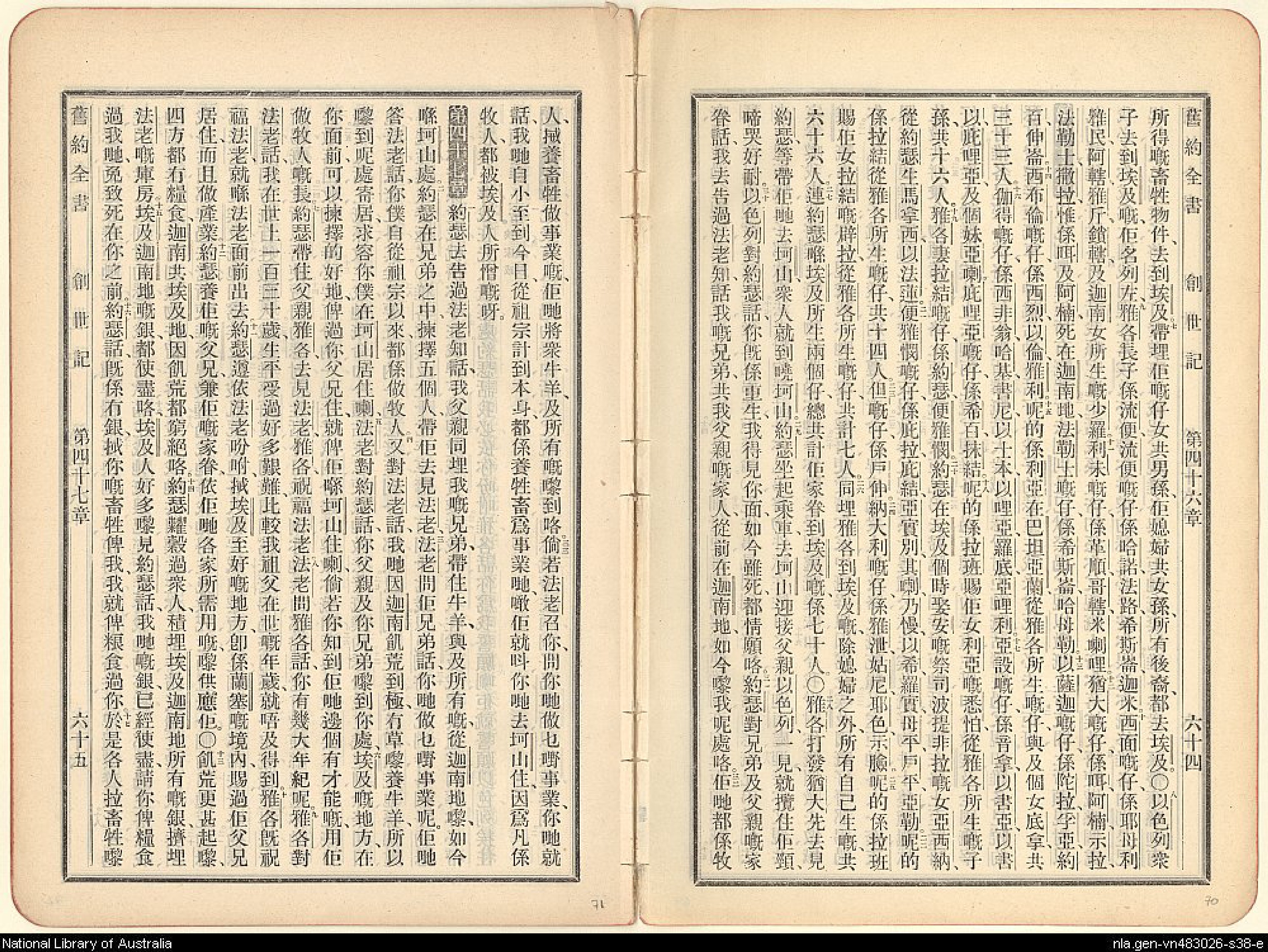 1907年新舊約全書 創世記 46 章 7 節到 47 章 16 節