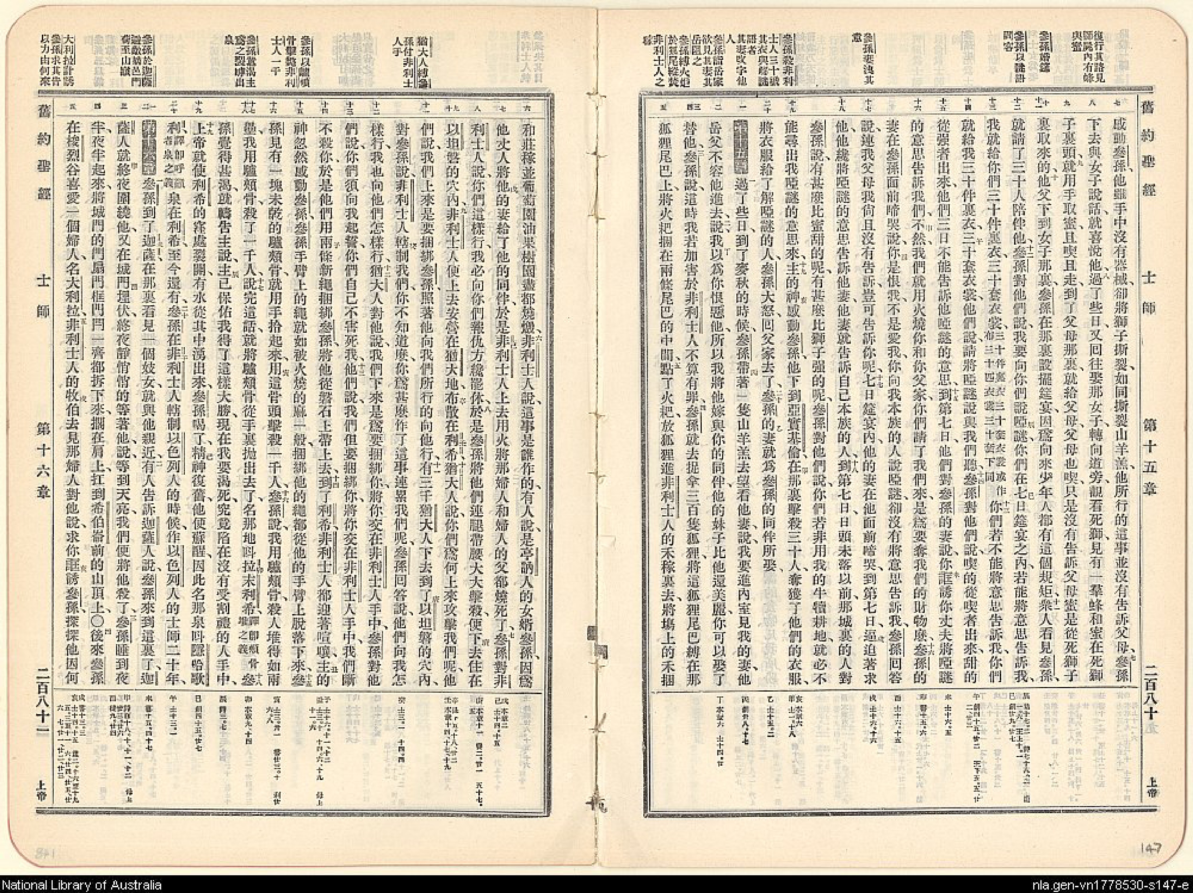 1909年新舊約全書 士師記 14 章 7 節到 16 章 5 節