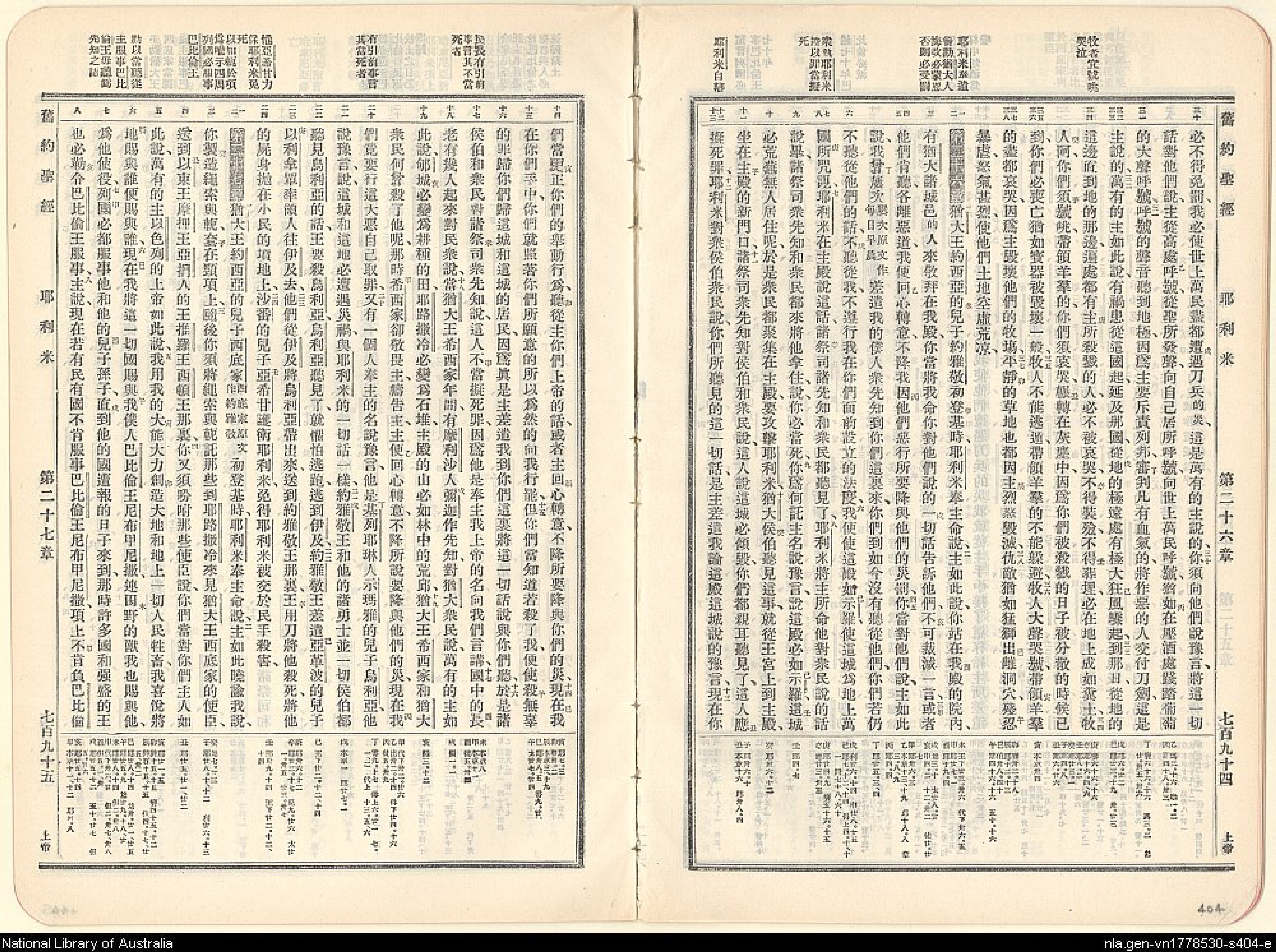 1909年新舊約全書 耶利米書 25 章 30 節到 27 章 8 節