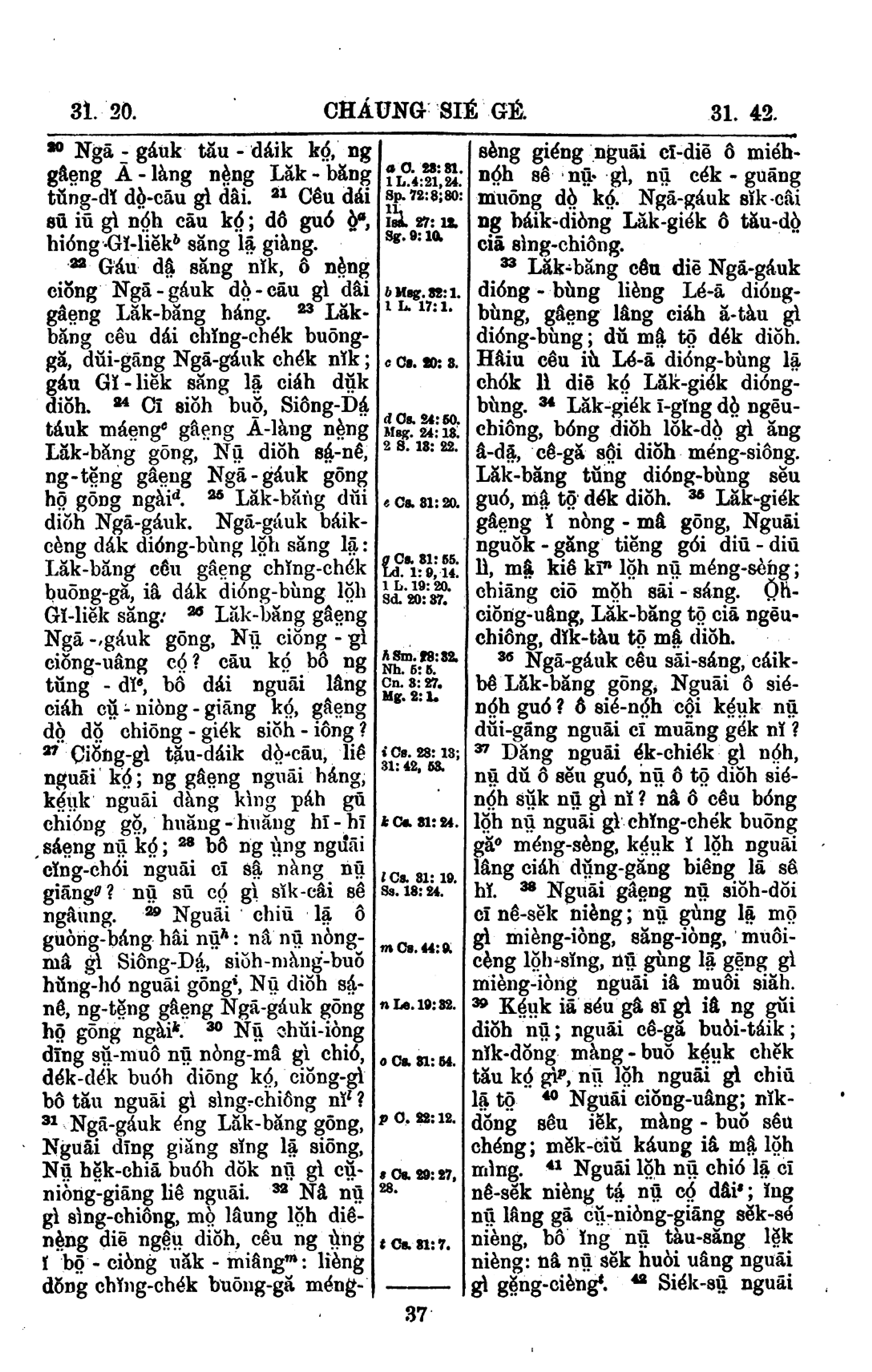 1908年新舊約全書 創世記 31 章 20 節到 31 章 42 節