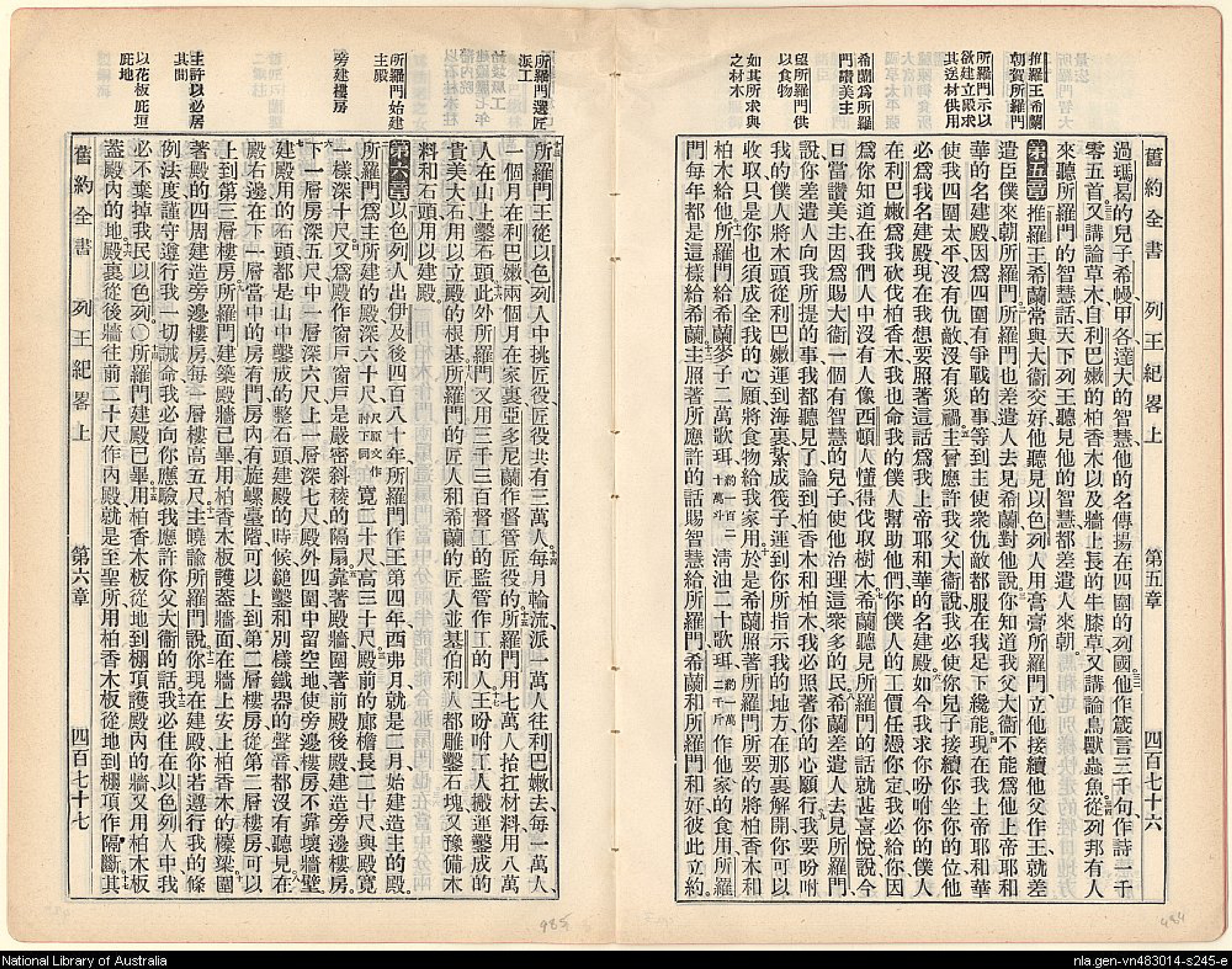 1905年舊約全書 列王紀上 4 章 32 節到 6 章 16 節