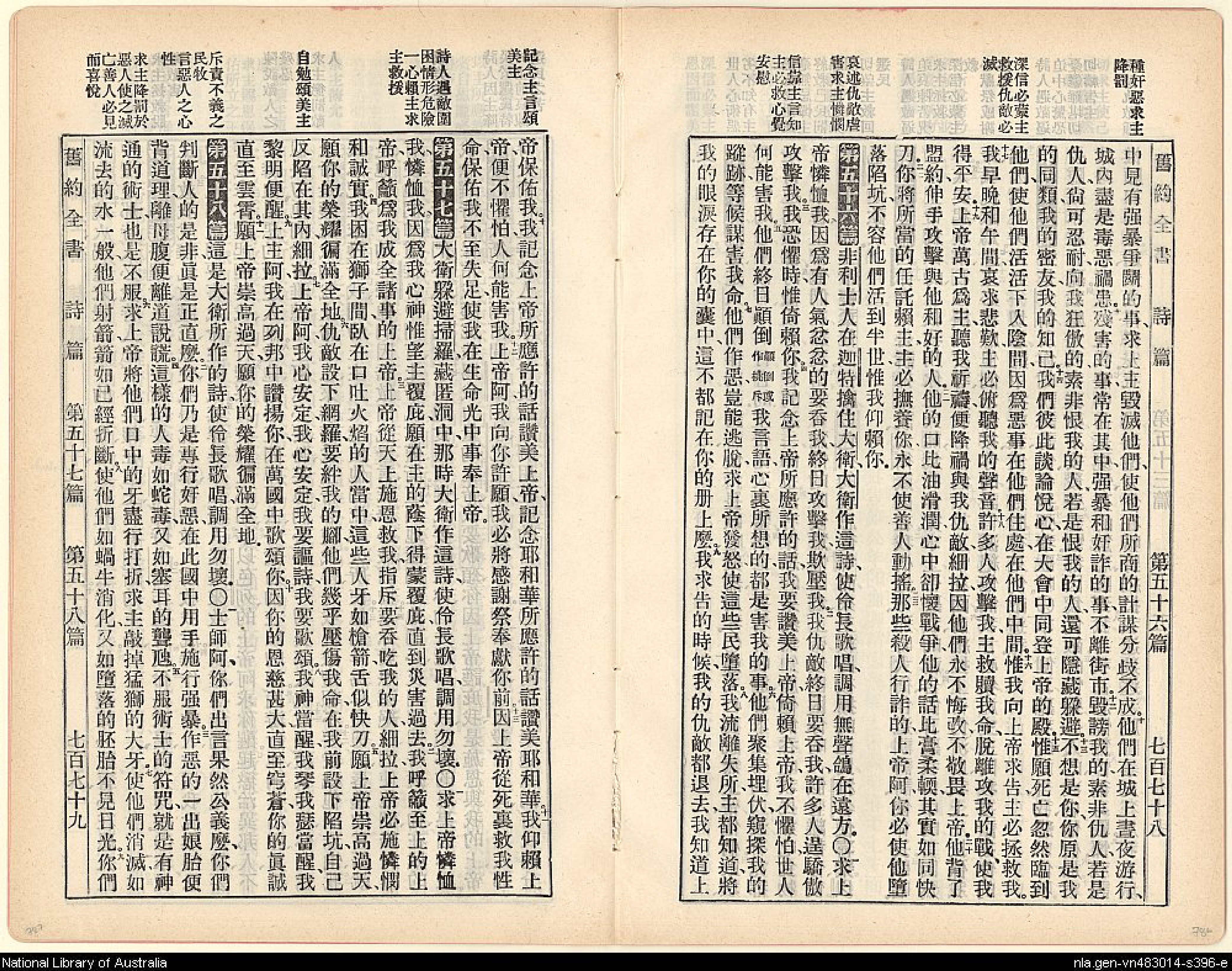 1905年舊約全書 詩篇 55 章 9 節到 58 章 8 節