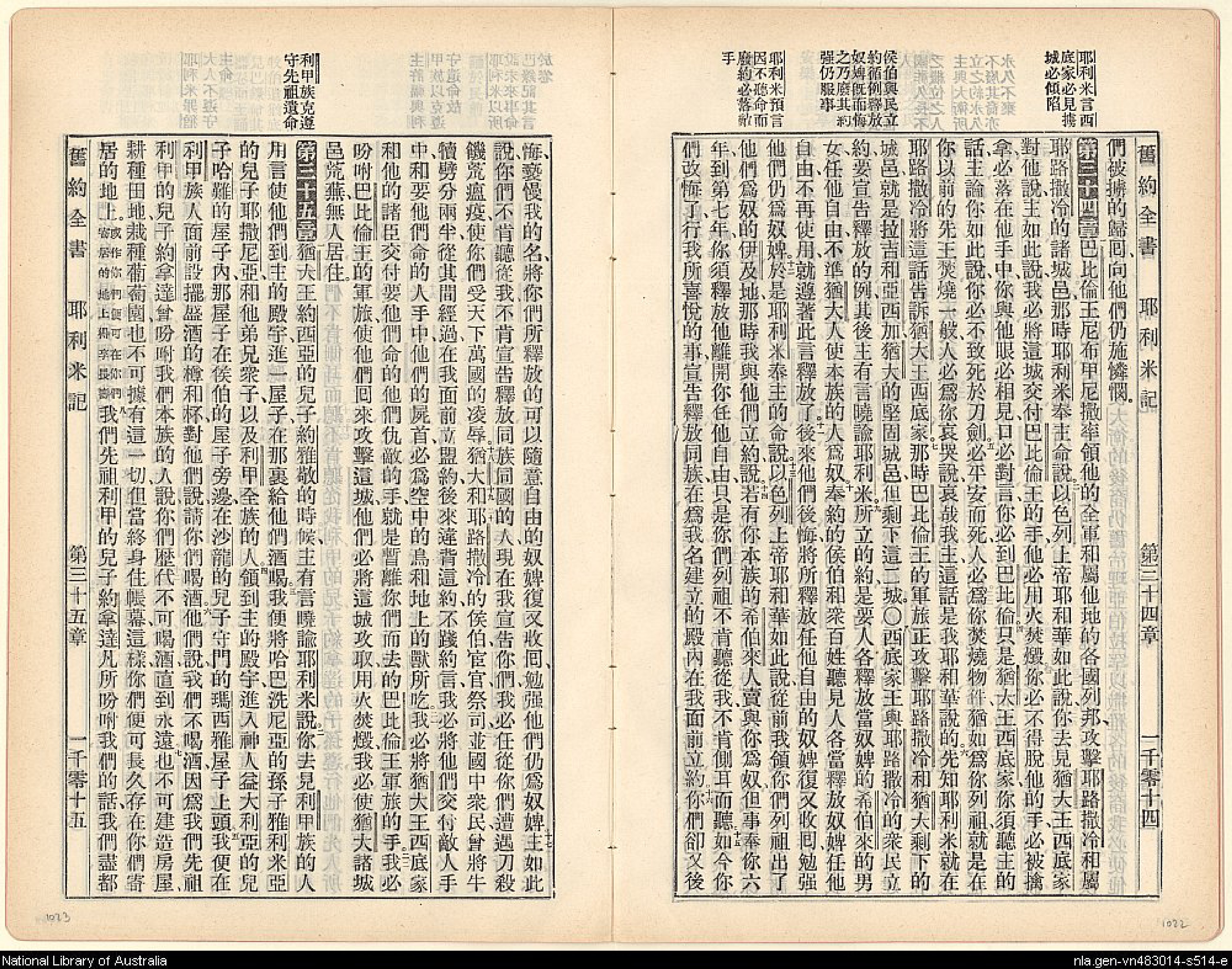 1905年舊約全書 耶利米書 34 章 1 節到 35 章 8 節