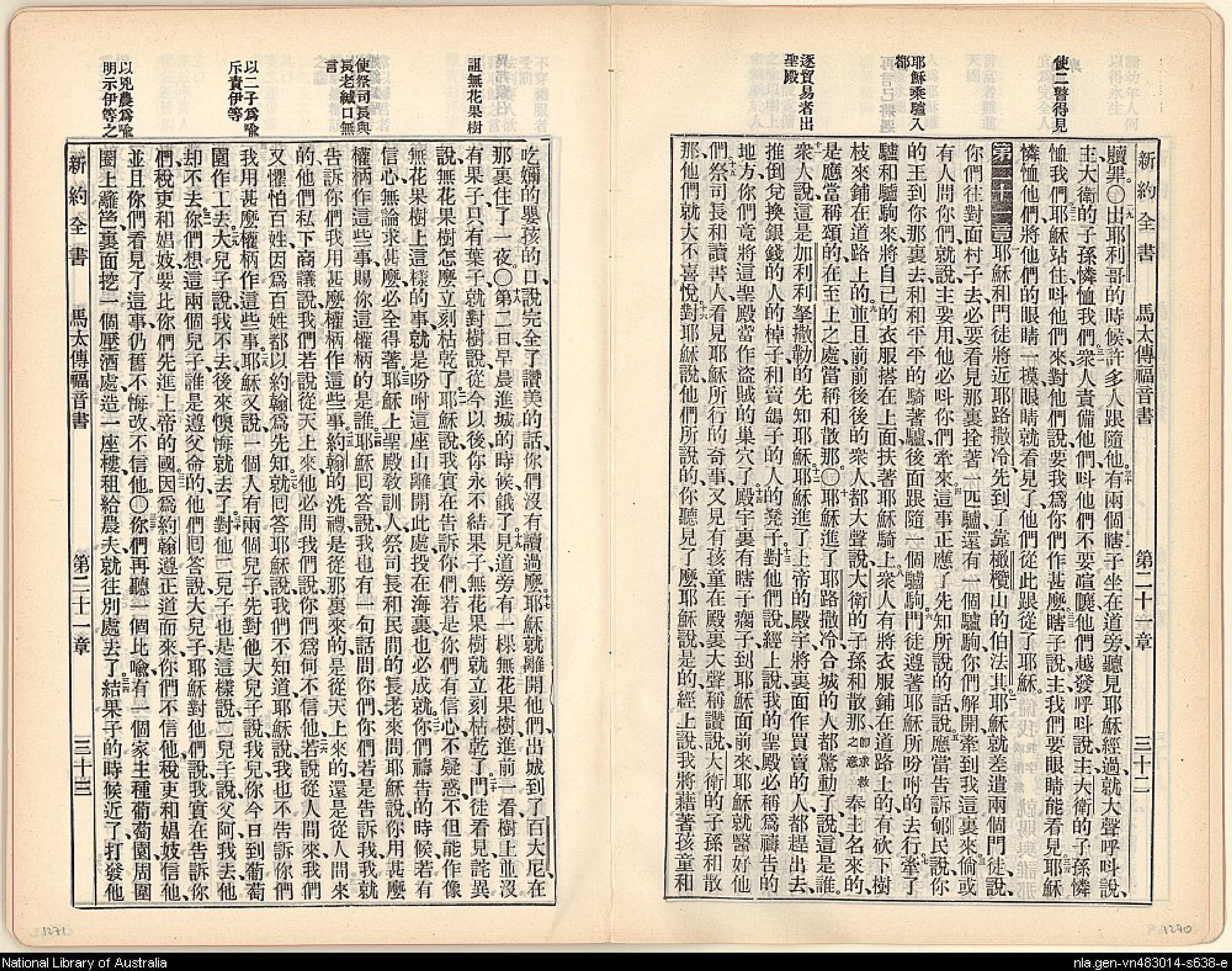 1905年舊約全書 馬太福音 20 章 29 節到 21 章 34 節